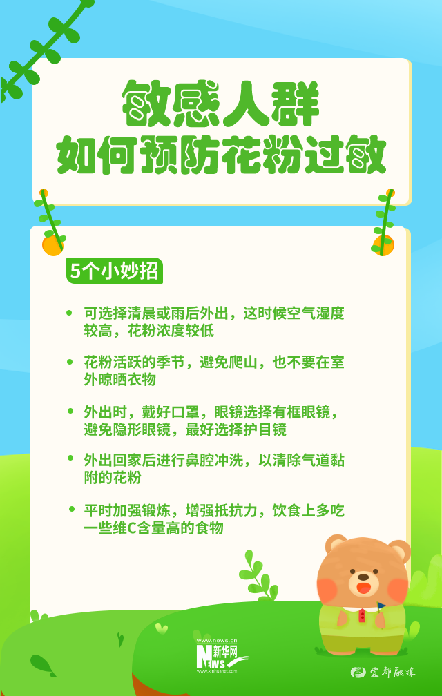 在我国大部分地区,4~6月份的春季高峰和8~9月份的秋季高峰是每年的两个花粉过敏高发季。对此,王华庆表示,春季鲜花盛开,一些有花粉过敏症史的人开始出现发病,包括眼睛痒、打喷嚏、咳嗽,严重的还会出现哮喘合并症。