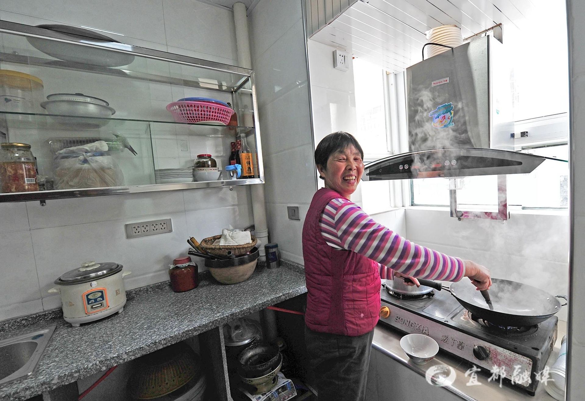 ▲松宜矿区矿工家属黄万玉在刚刚搬进的新居做晚饭(2014年4月29日拍摄)