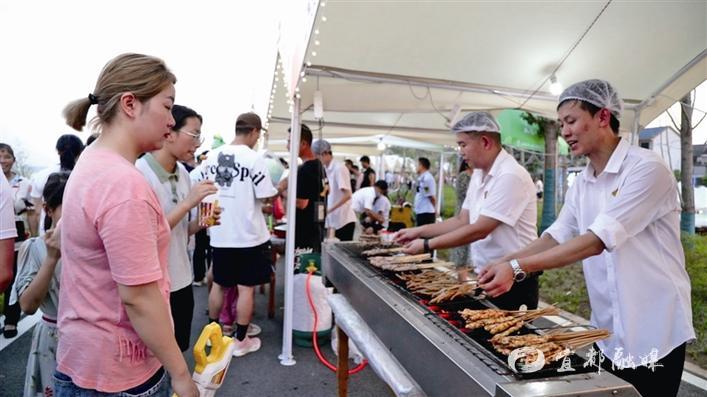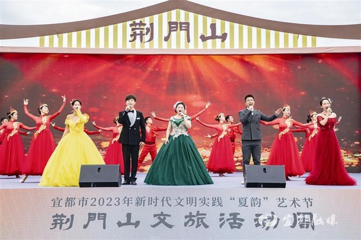 7月15日,宜都市2023年新时代文明实践“夏韵”艺术节暨荆门山文旅活动周火热启动(图①、②、③)。活动周将从7月15日持续至23日,包括烟火市集、健身操比赛、村BA篮球赛、文艺沙龙等,丰富多彩的活动吸引了近万人前来游玩,带动了周边荆门山、青林寺等旅游热潮。