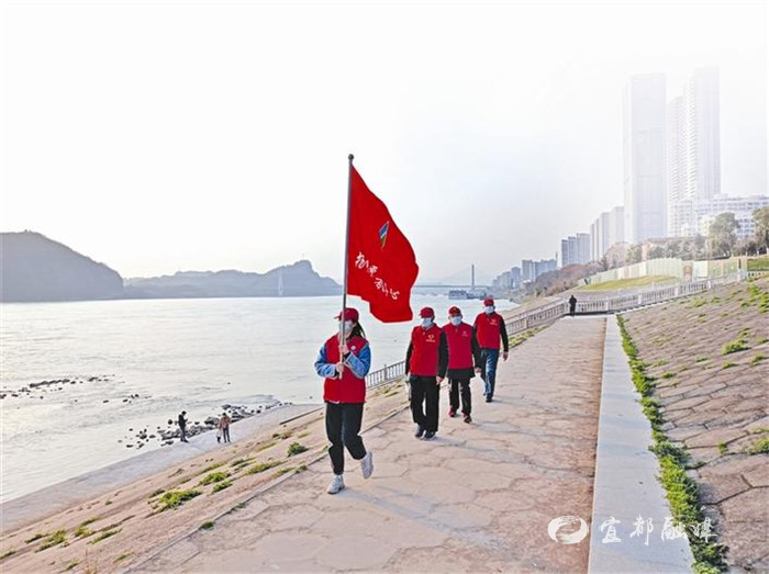 志愿者在长江边巡逻。图片来源:宜昌文明网