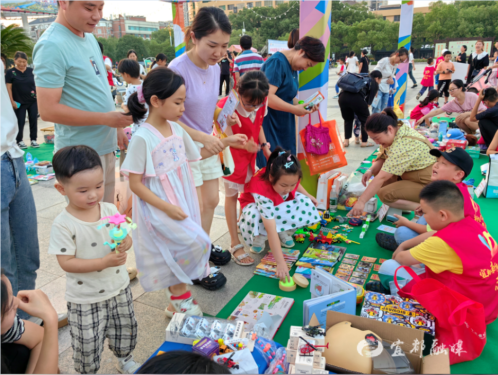 “大伙都来瞧一瞧呀,我这个汽车模型玩具仅此一份,特别好玩,四轮驱动,只卖20元,走过路过不要错过啦!”“叔叔阿姨们到我这里看看,有买有送,还有更多的惊喜!”……稚嫩而纯真的叫卖声为往日本就热闹的宜都市人民广场增添了一份别样的风采。好物遇新主,公益市集通过“摆摊”的形式将旧物循环利用,提高物品使用率,践行环保低碳的新时代绿色生活方式。