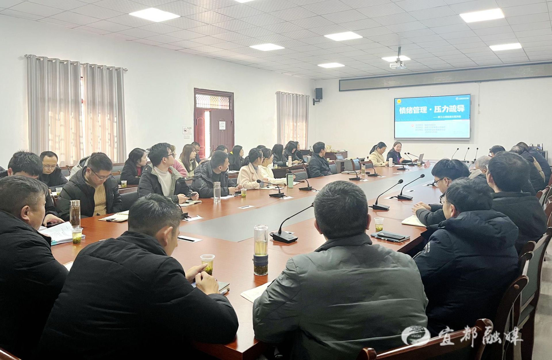 本次讲座邀请了宜昌市职工心理健康志愿服务队讲师、国家二级心理咨询师王矜岚就情绪管理和压力疏导两个方面为全体机关干部职工作专题辅导。