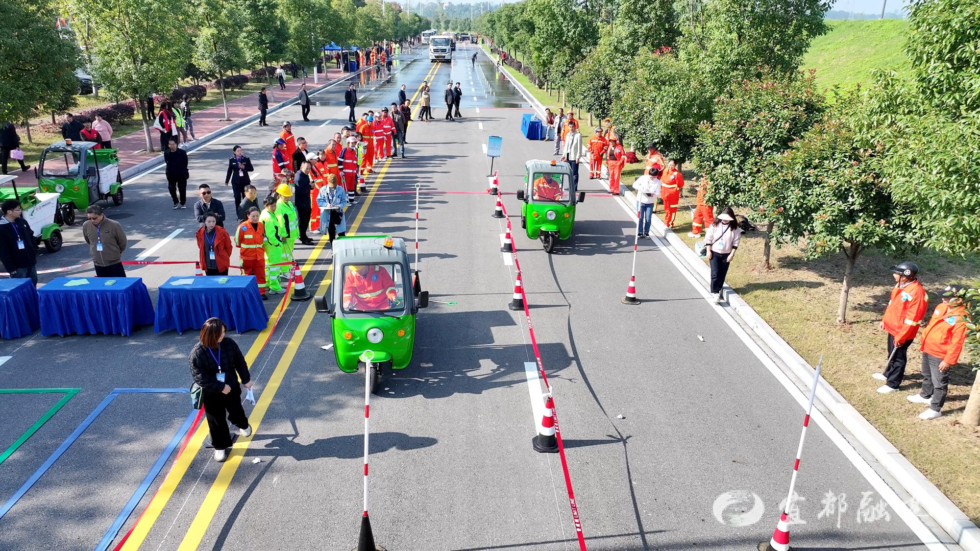 竞赛现场,电动车保洁作业、精度洒水、应急清污、垃圾分类四项比赛同步展开。参赛选手们全神贯注,熟练地操控着各类清扫设备:他们精准把控洒水力度,让路面保持湿润却无积水;在应急清污环节中,高效彻底地完成任务,每一个动作都流畅精准,充分展现了环卫人扎实的专业功底和良好的精神风貌。