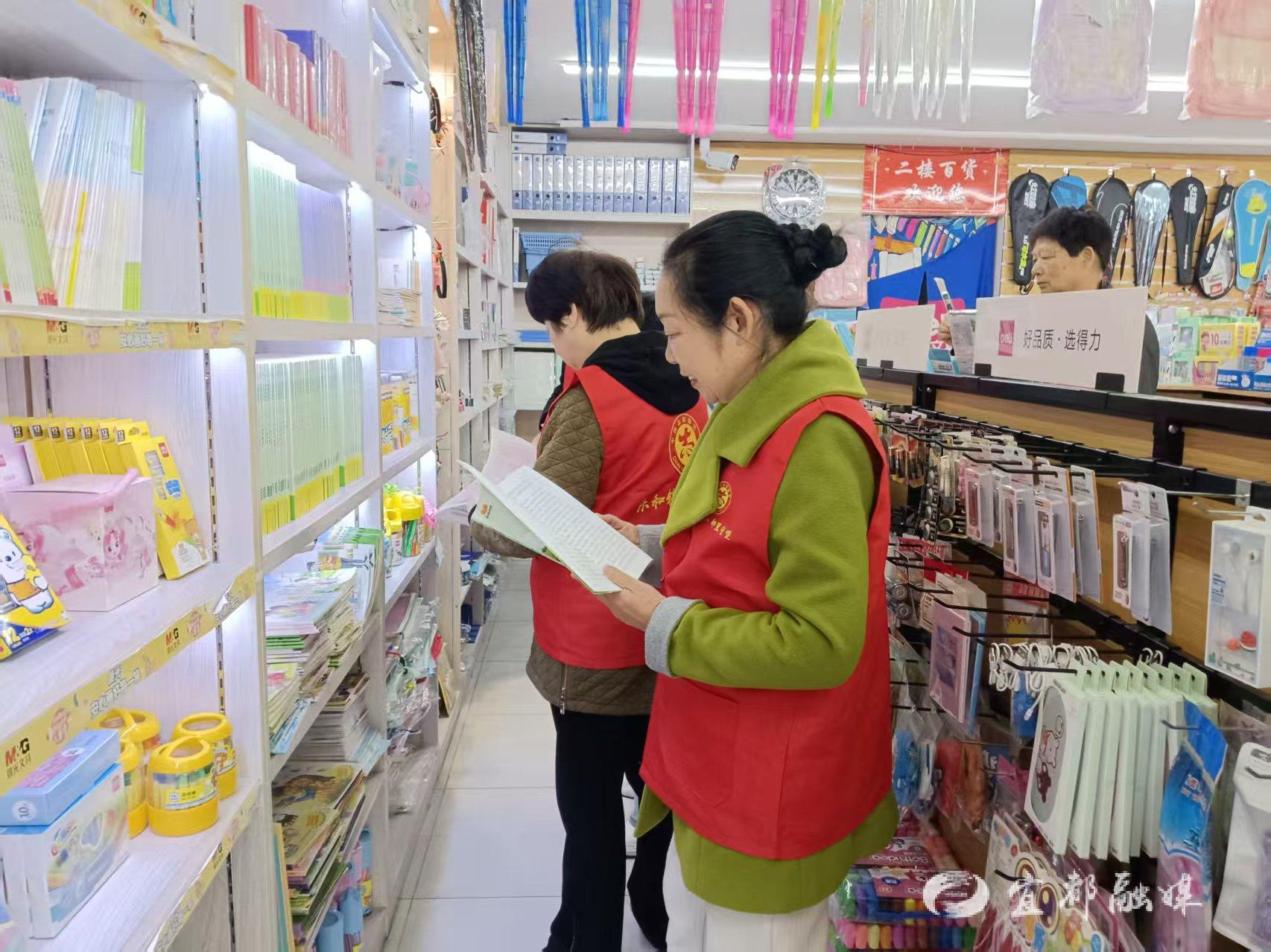巡查中,志愿者与社区工作人员深入各文具书店的图书陈列区域,以未成年人接触频率较高的课外读物、字帖、卡通漫画等为重点检查对象,逐本核查内容质量。通过细致审查,持续推进“扫黄打非”工作落地,严防含有不良信息的非法出版物流入未成年人手中。
