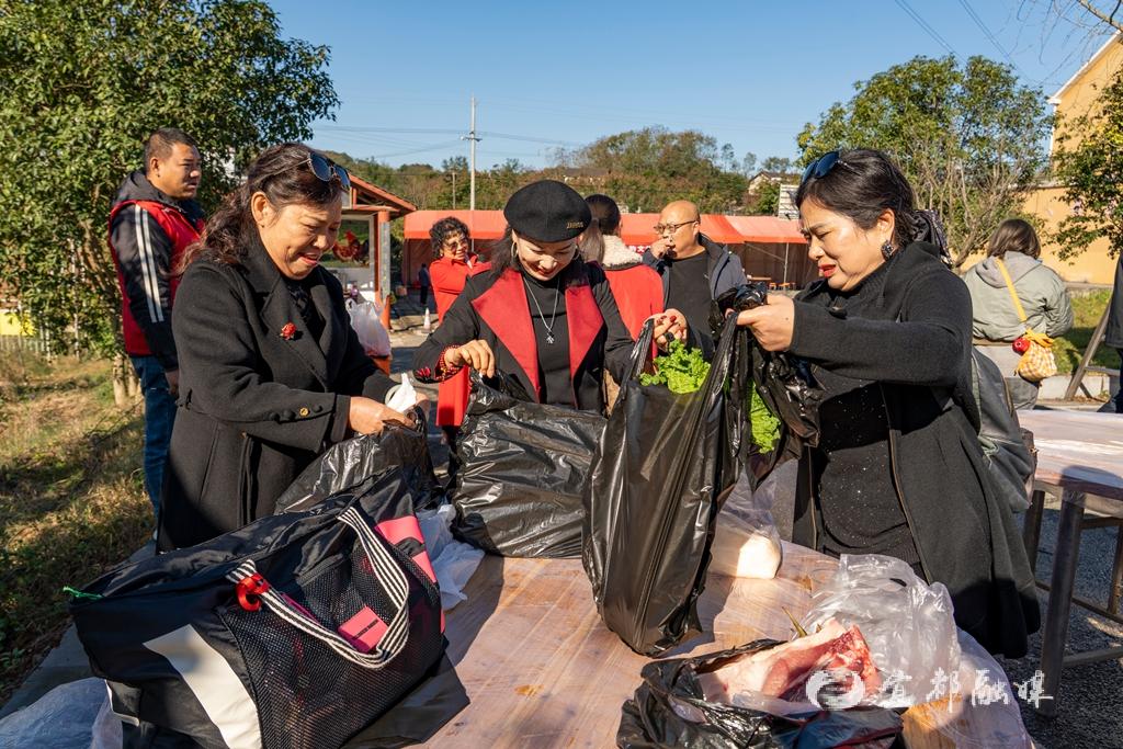 作为城乡共建的重要纽带,东星社区此前已通过“乡村货栈”为枝城镇五村联盟的特色农产搭建起进城桥梁。此次组织乡村一日游,更是将“农货进城”升级为“流量进村”,既让社区居民走出城市、亲近自然,感受乡村发展新变化,也让村民们在家门口尝到“旅游饭”。活动现场,现杀的土猪肉、土鸡、土山羊以及新鲜时令蔬菜等农产品备受青睐,游客们满载而归,实现了“游览有乐趣、购物有收获”的双重体验。