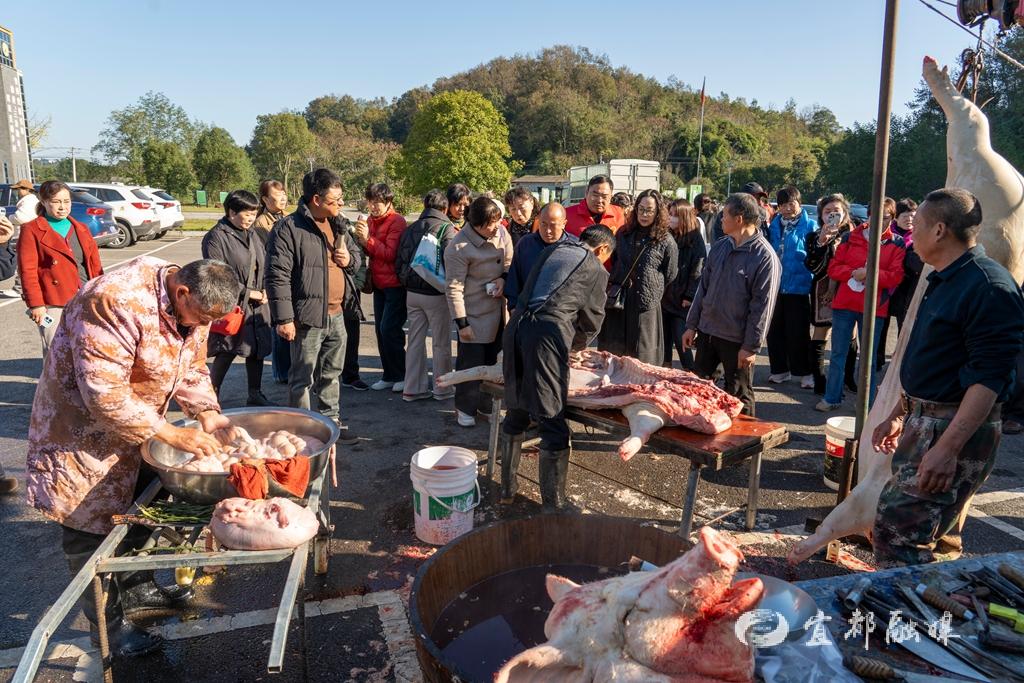 此次活动以“赏田园风光、品土猪盛宴、购特色农产品”为核心,枝城镇五村联盟打破村域界限,整合乡村生态与农业资源,为游客量身打造了一场兼具趣味与烟火气的乡村之旅。漫步山间,游客们追逐着满山奔跑的土鸡,静听鸟语虫鸣,在清新空气里感受乡村自然之美;午间时分,农家菜、正宗土鸡火锅、传统抬格子、血晃子等特色美食陆续上桌,鲜香滋味让游客们的味蕾重拾久违的乡土记忆。