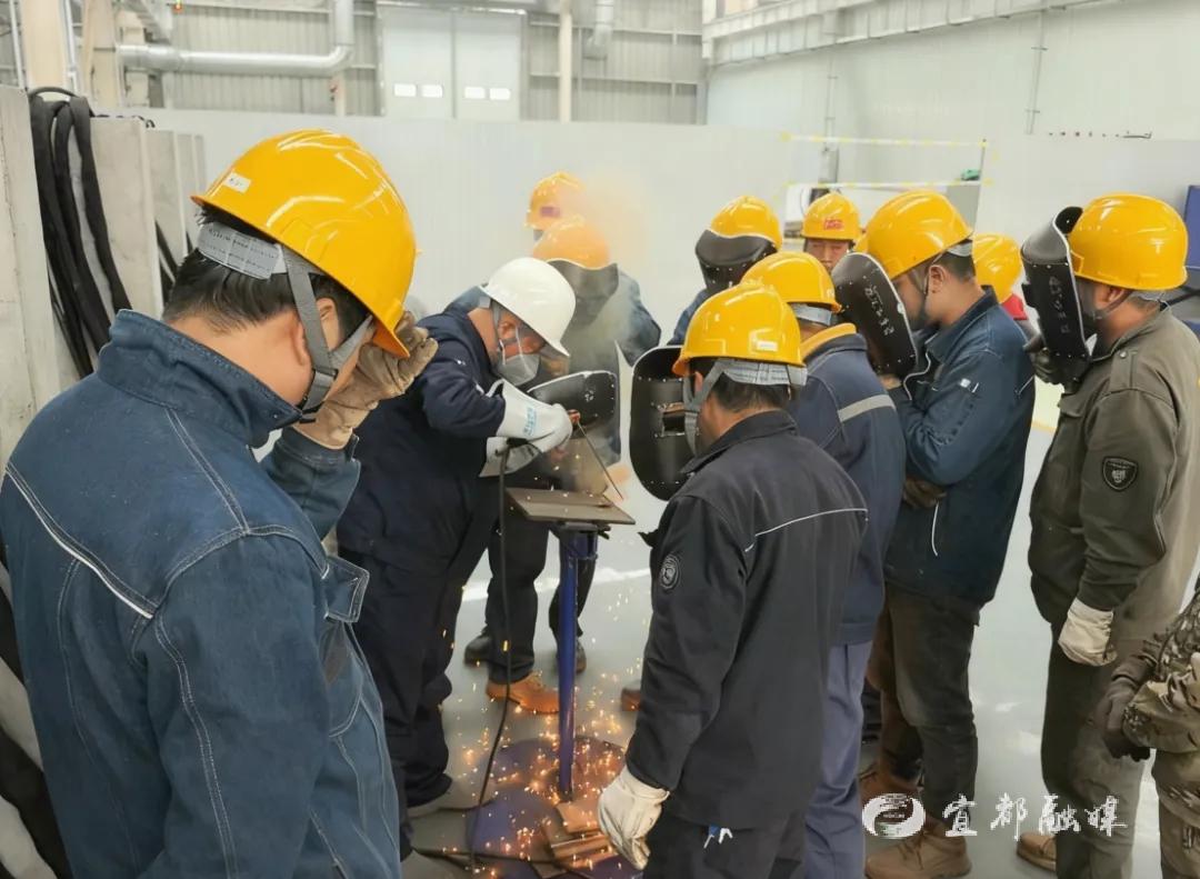 焊工项目化培训打破传统,将实训课程安排在车间内,学员们使用企业实际生产设备进行实操,练习真实的船舶分段建造与焊接等工艺流程。同时,宜都市考试培训中心教师、宜昌市焊工技能大师杨昌兵和企业内训师联合授课,将生产中的典型案例、质量标准及安全规范融入教学全过程,实现教学内容与生产实际对标对表。
