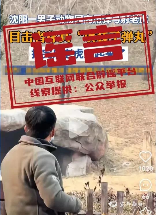 谣 言 沈阳森林动物园一男子用弹弓射老虎?