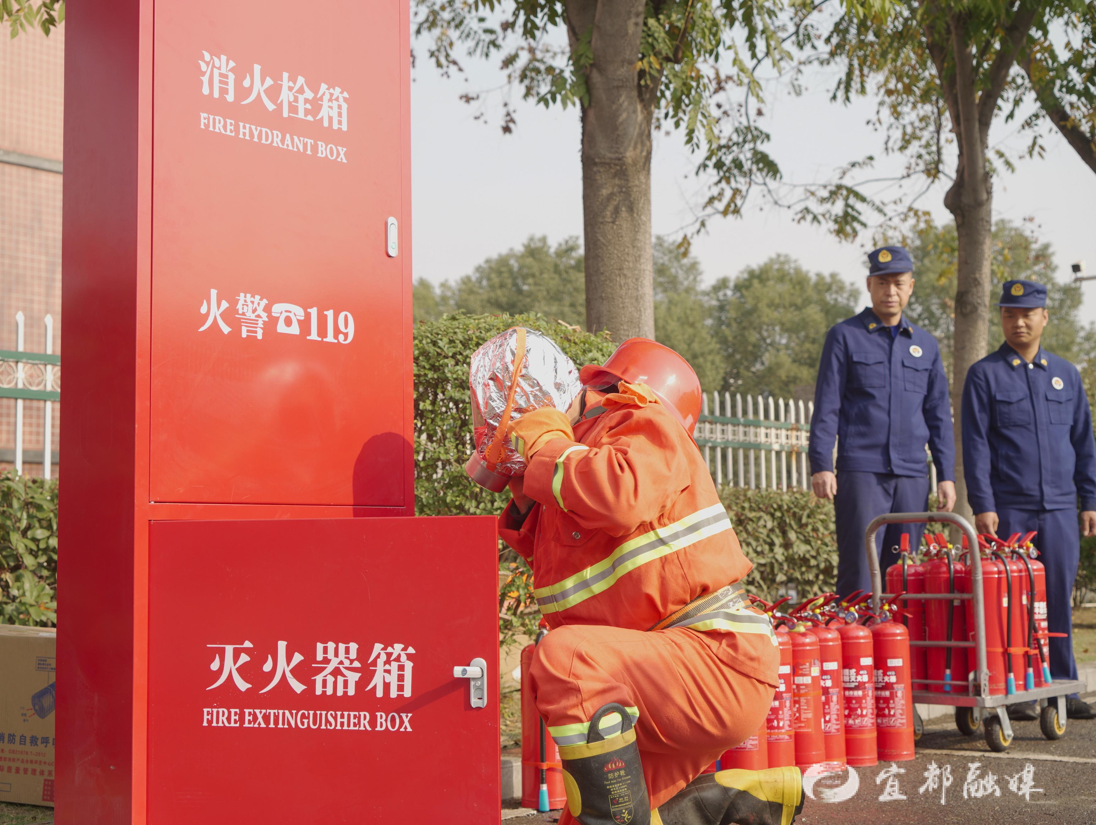 宜都融媒讯(通讯员 谢雷)12月5日,宜都市消防救援大队举办全市多种形式消防队伍技能大比拼活动,旨在提升重点单位及物业微型消防站人员业务技能与应急处置能力,检验日常训练成效。来自全市40家消防安全重点单位及物业服务企业的百余名微型消防站队员齐聚赛场,展开一场紧张激烈的实战化技能较量。