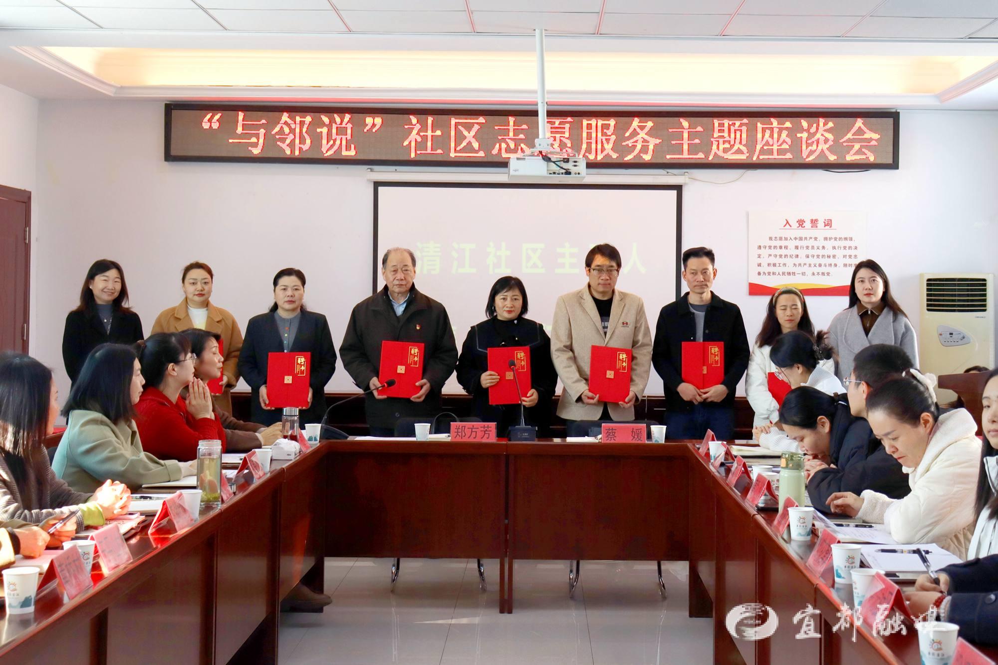 宜都融媒讯(通讯员 肖懿娜)近日,陆城街道清江社区新时代文明实践站内,红色聘书整齐摆放,严会、代斌、万华祥等14位居民坐得笔直——这一天,他们从“社区邻居”变成了家园治理的“主理人”。