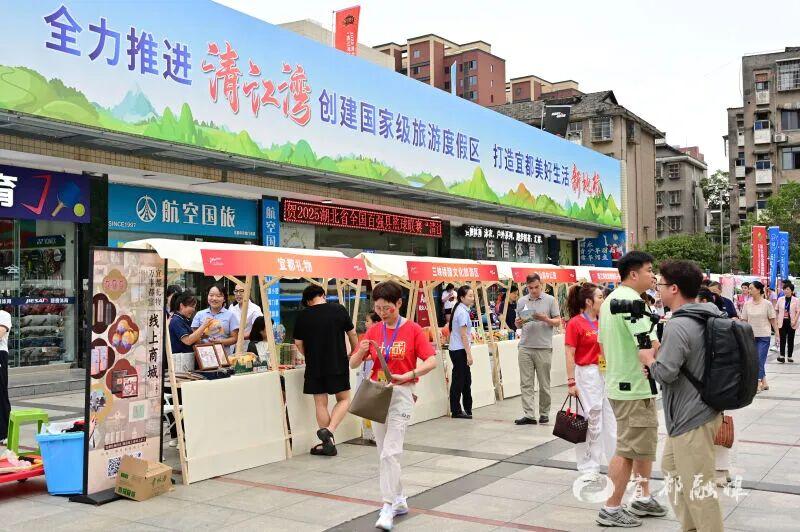 赛场内热情高涨,赛场外亦是热闹非凡。每场比赛,均设置有文旅市集,共25个摊位,米酒粑粑、手工月饼、季狗子包子等非遗美食现场展销,土老憨橘醋、葛粉等农特产品借势推广,一众宜都特产借助赛事流量触达新客群。