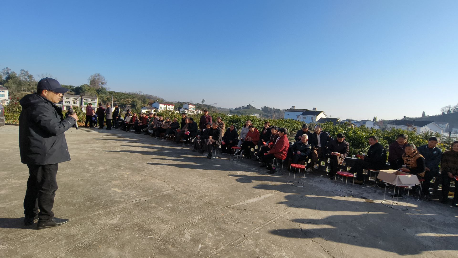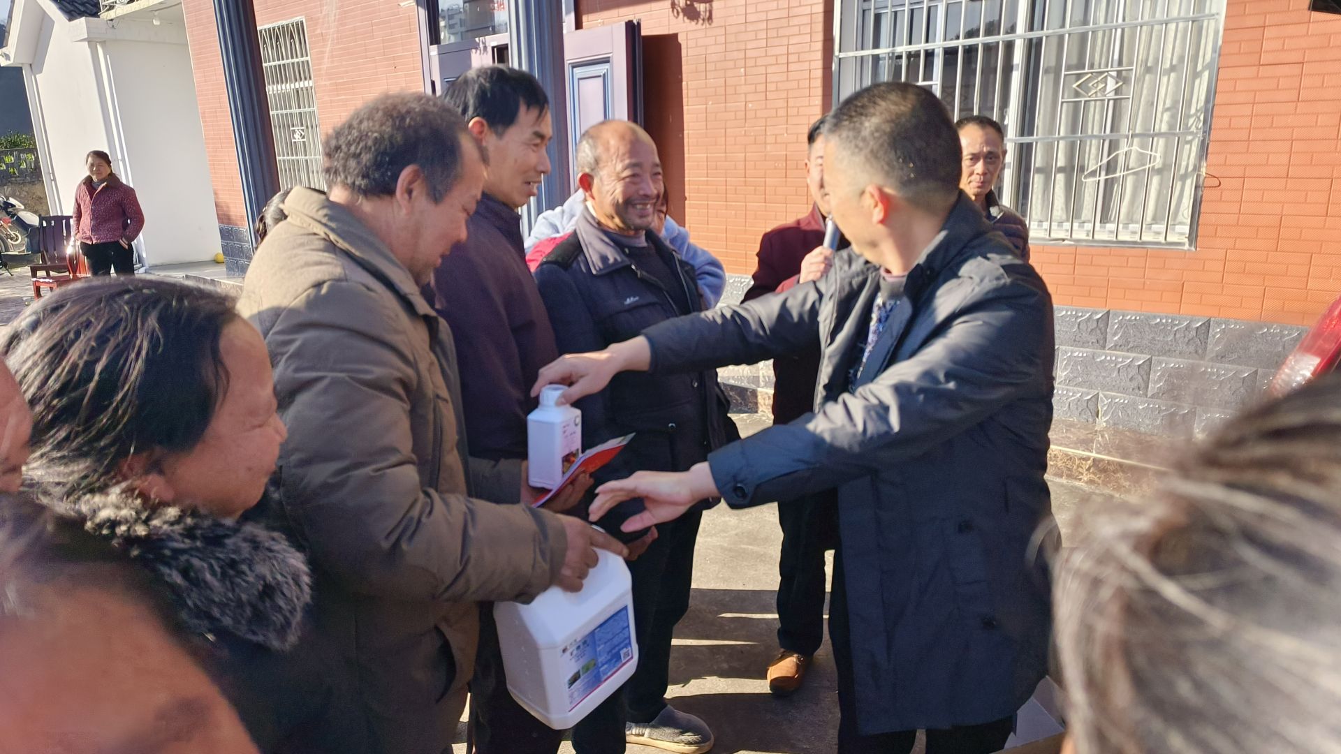 培训尾声的药剂发放环节更是让村民们喜出望外。现场发放的“矿物油”和“啶虫・毒死蜱”,正是冬季清园防治木虱的“及时雨”。手捧免费药剂,村民们信心十足:“有了科学技术、先进器械和对症药剂,咱们肯定能打赢柑橘黄龙病防控这场硬仗!”