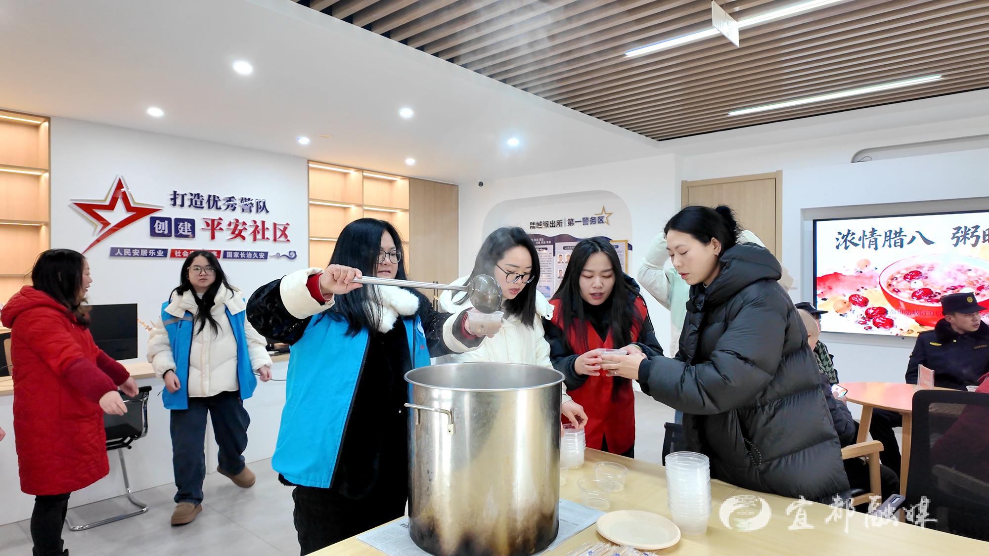 宜都融媒讯(记者 关春玉 实习生 胡欣悦)1月26日是腊八节,陆城街道锦江社区开展“浓情腊八 粥暖人心”送温暖活动,为环卫工人、新业态劳动者等群体送上热粥与祝福。