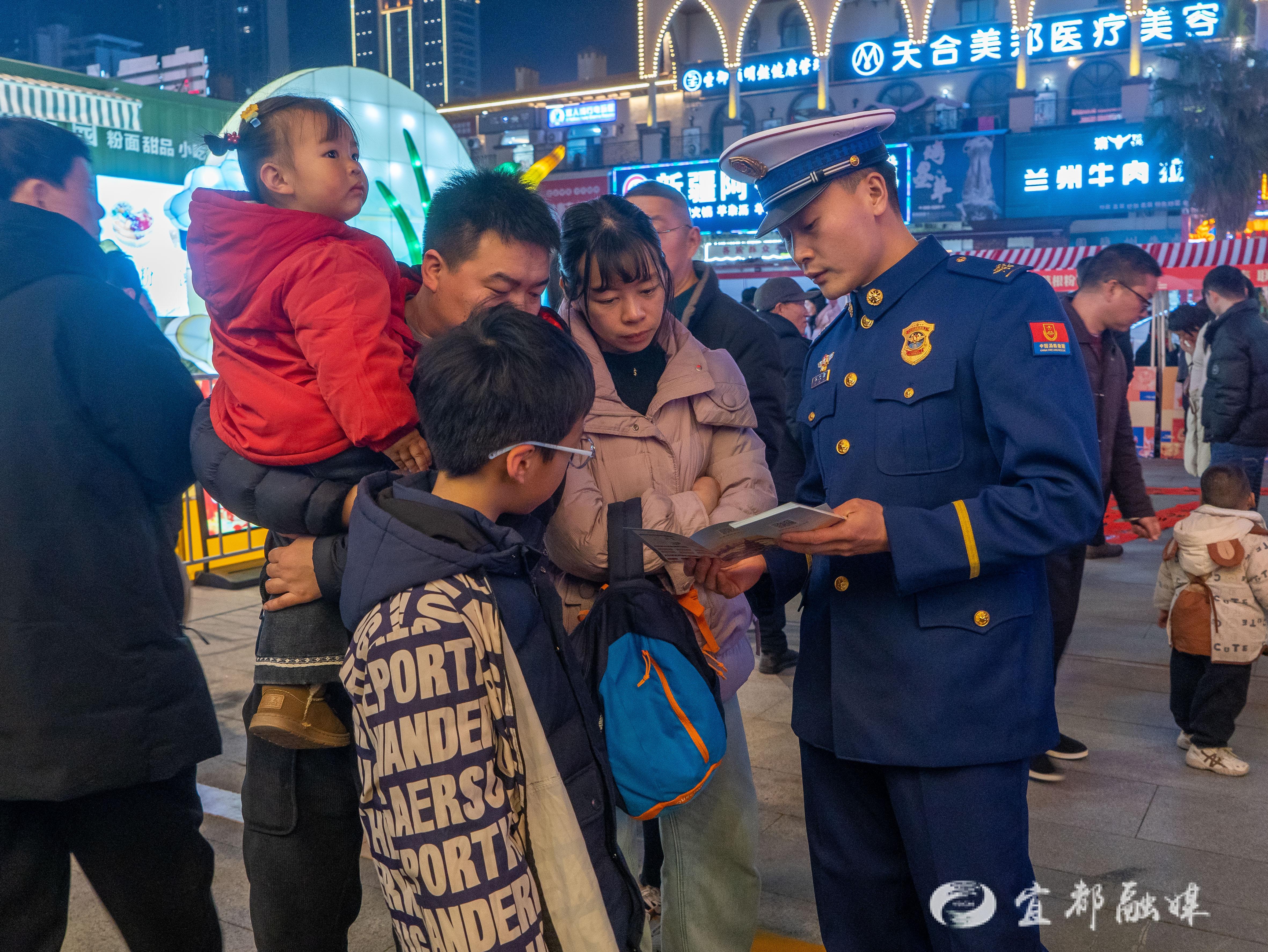 为确保活动期间消防安全,宜都市消防救援局提前安排、科学布防,采取“定点驻守+动态巡防+宣传同步”的模式,全力护航灯会平安有序,并同步开展消防科普宣传,实现安保宣传“两不误”。