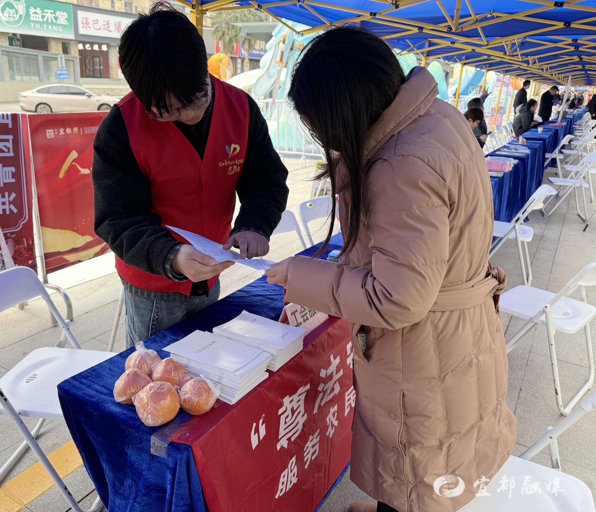 宜都融媒讯(通讯员 梁凤莲)2月25日,2026年宜都市“春风行动·就业在宜都”暨“尊法守法·携手筑梦”服务农民工公益法律服务系列活动在宜都万达广场举办。此次活动旨在扎实做好节后就业服务,助力企业开工复产,切实保障农民工合法权益,实现稳就业、保用工、惠民生的工作目标。