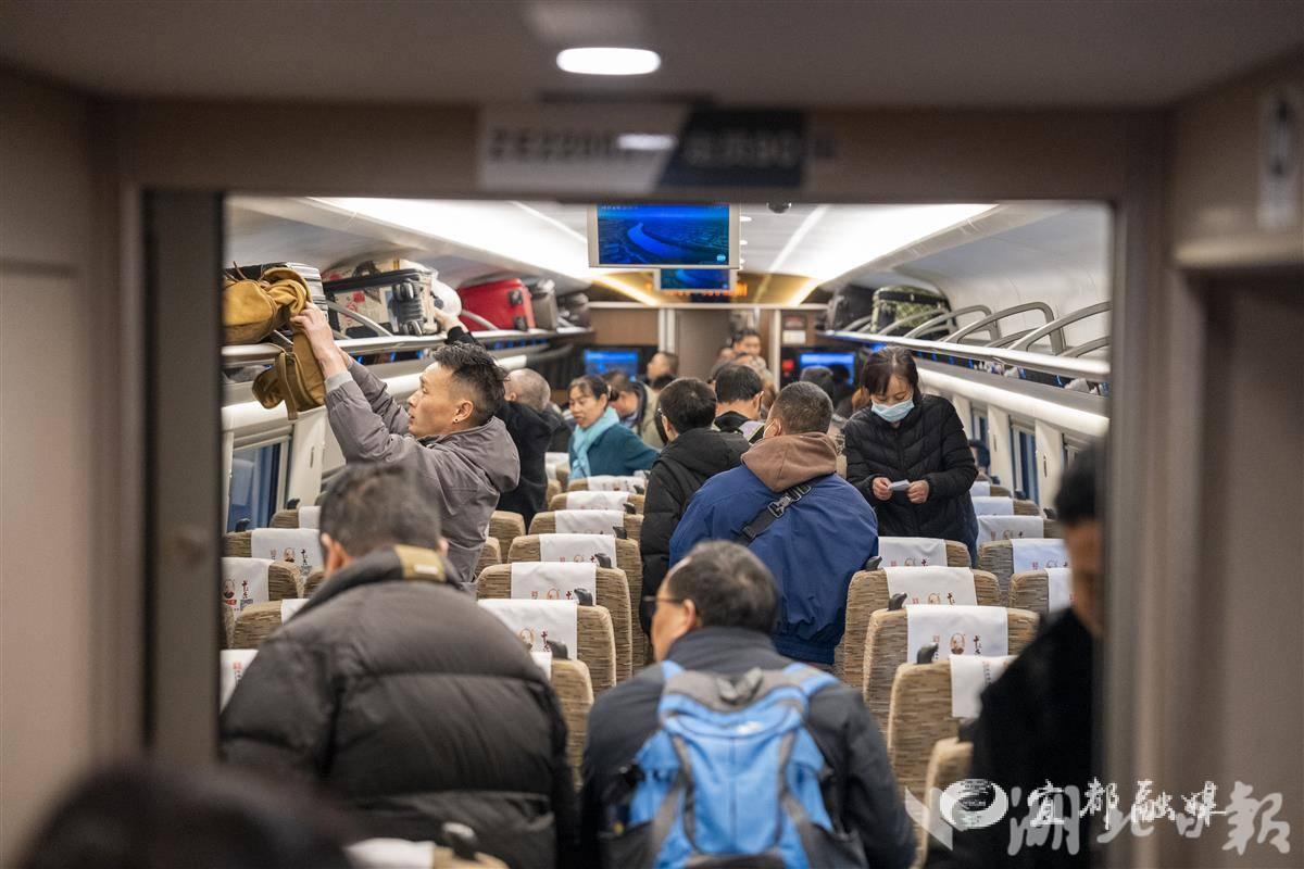 图为列车车厢内,务工人员正有序乘车。湖北日报全媒记者夏晓君摄