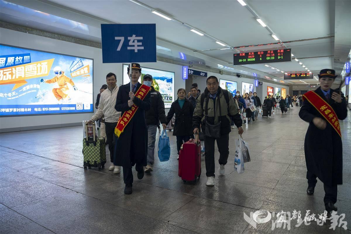 宜昌市在粤鄂两省人社厅支持下开展的“春风送岗•情暖归途”活动,为节后返岗务工人员架起一条安全便捷的“绿色通道”。湖北日报全媒记者夏晓君摄