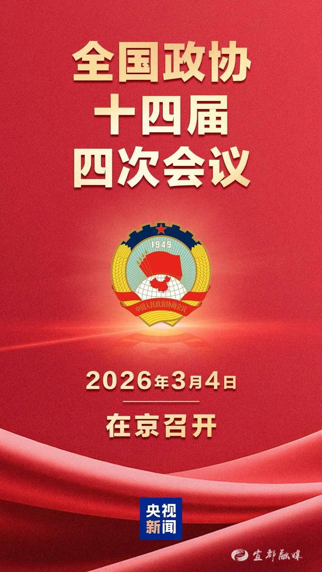 3月1日召开的中国人民政治协商会议第十四届全国委员会常务委员会第十五次会议决定:中国人民政治协商会议第十四届全国委员会第四次会议于2026年3月4日在北京召开。