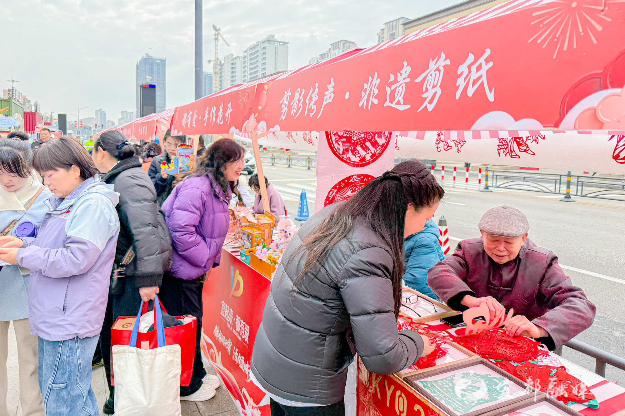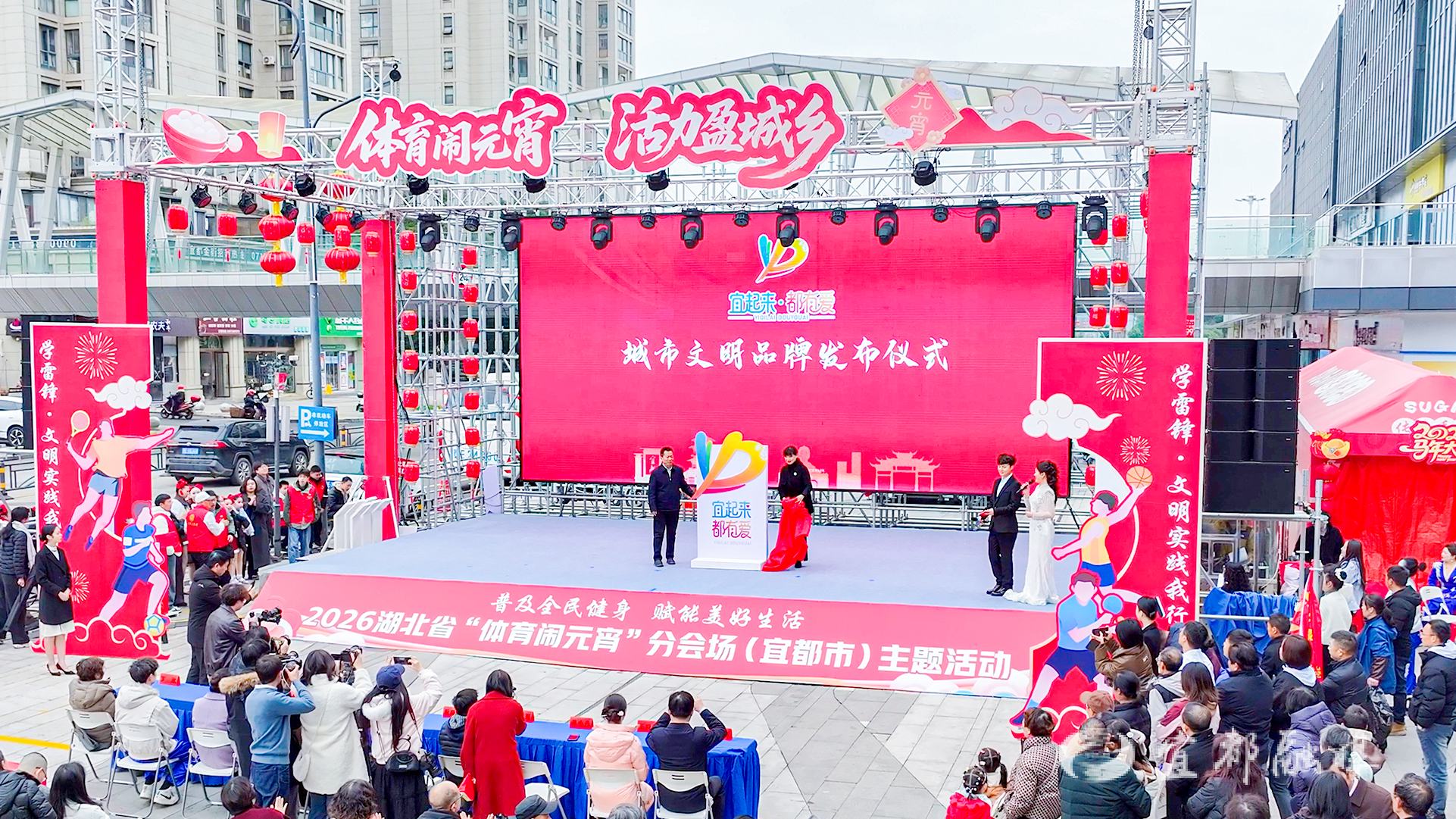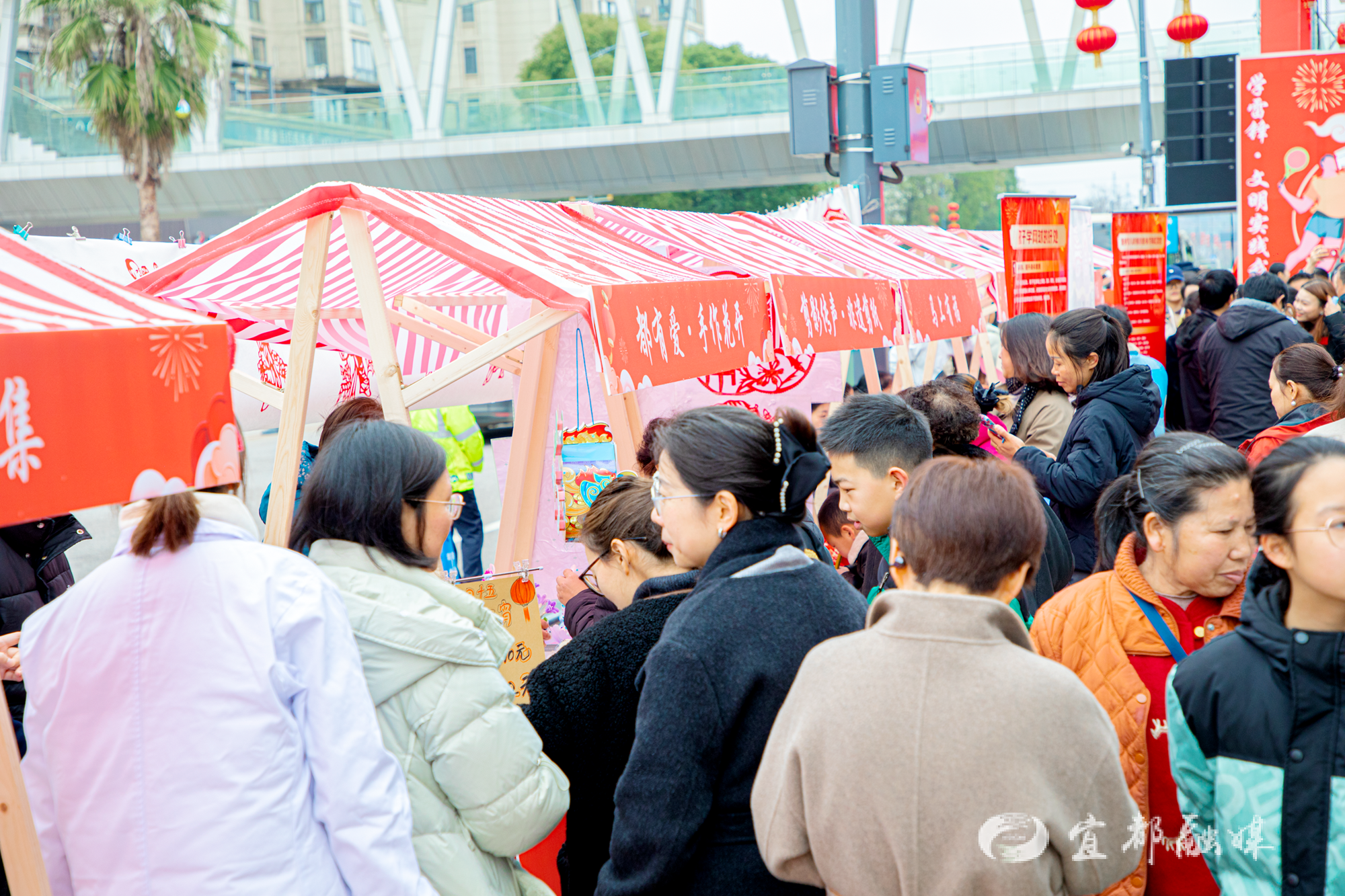 活动现场同步开设了“宜起来·都有爱”文明市集。市民在元宵福袋制作、健康义诊、科学健身指导等16个文明实践志愿服务展位中感受节日温暖,体会城市温度。