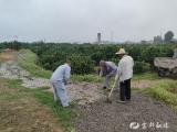 高坝洲镇中坪村中坪路北段道路施工现场一片繁忙