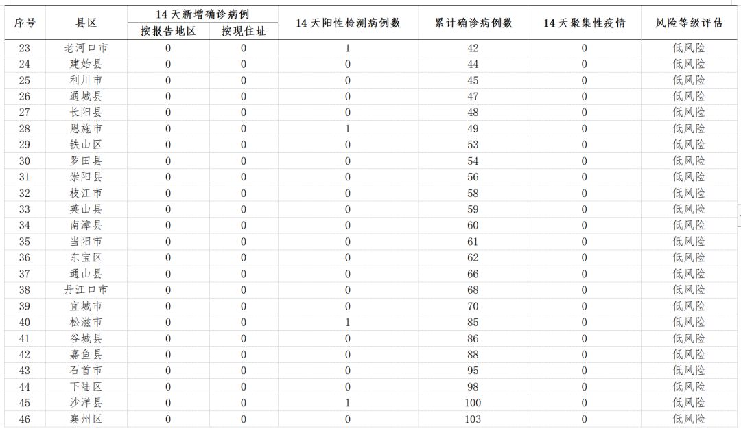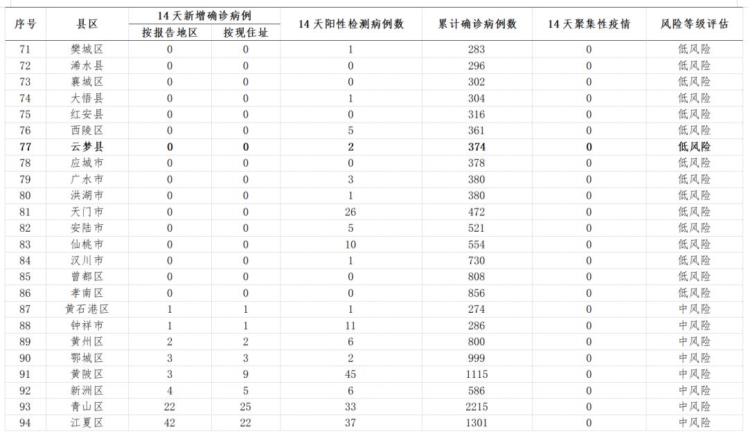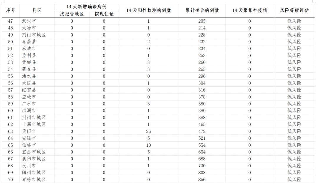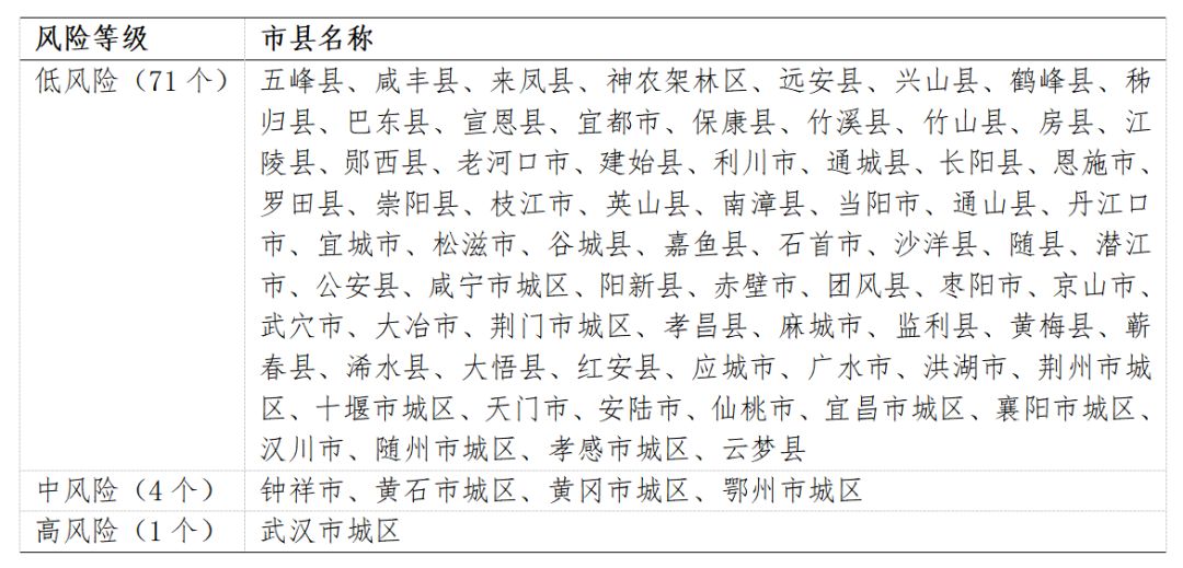 表1 湖北省市县风险等级一览表