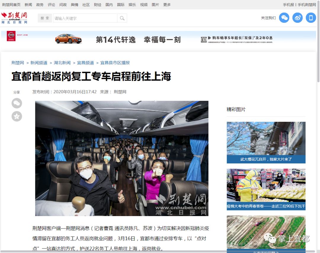 3月17日下午3时30分,市客运中心首趟宜都至深圳点对点服务专车出发,本次运送返岗复工人员18人,后期将根据返岗复工人员需求,实时开通点对点运输服务。