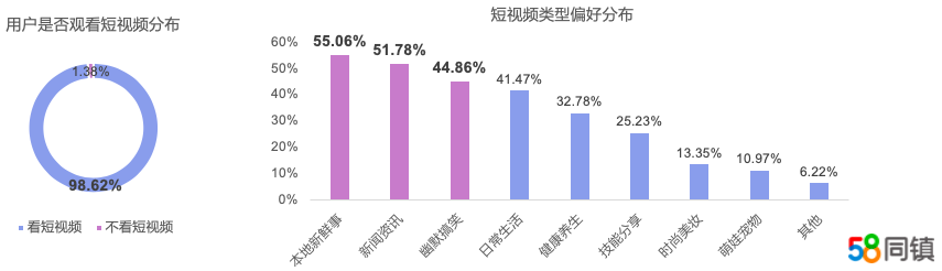 报告还显示,98.62%的用户疫情期间有看短视频的习惯,最受用户喜爱的三类短视频是本地新鲜事儿,新闻资讯和幽默搞笑,占比依次为55.06%、51.78%、44.86%。时长在15秒-3分钟之间的短视频更受下沉市场用户青睐,偏好占比达58.33%,而在短视频博主类型方面,社会名人、熟人好友和娱乐明星更受关注。疫情期间,87.65%的用户观看段视频的习惯发生了变化,其中,45.65%的用户看短视频的时间比以往更长,13.78%的用户相比以前更愿意参与短视频的点赞、评论等互动。