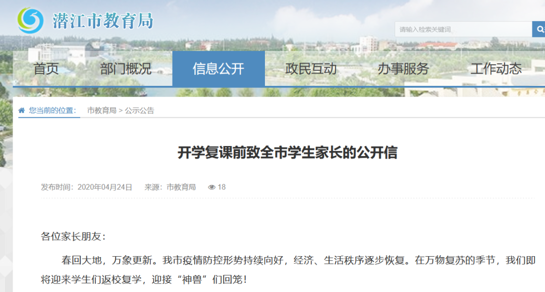 《开学复课前致全市学生家长的公开信》