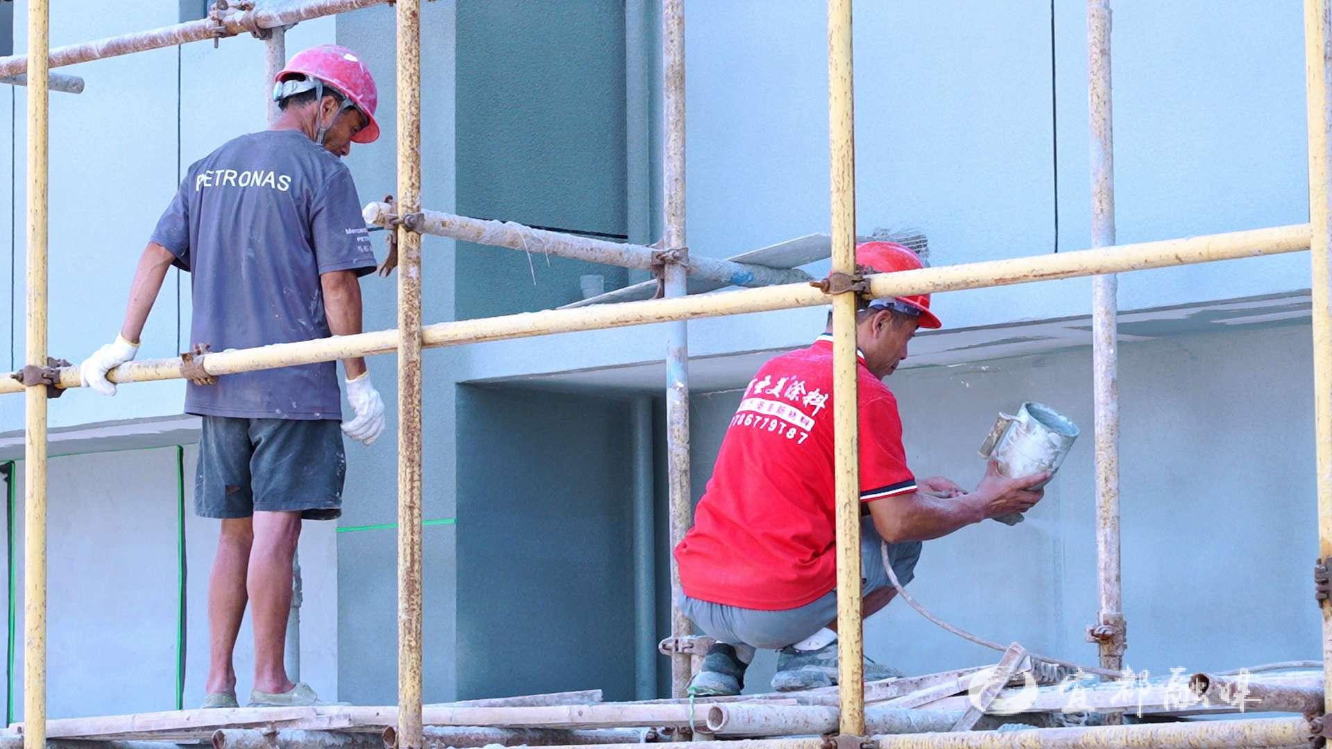 8月3日,在宜昌金德新材料科技有限公司年产40000吨净化玉米浆项目现场,工人们正冒着酷暑进行外墙上漆、设备安装等工作,办公楼和一栋生产车间已完成主体工程建设。
