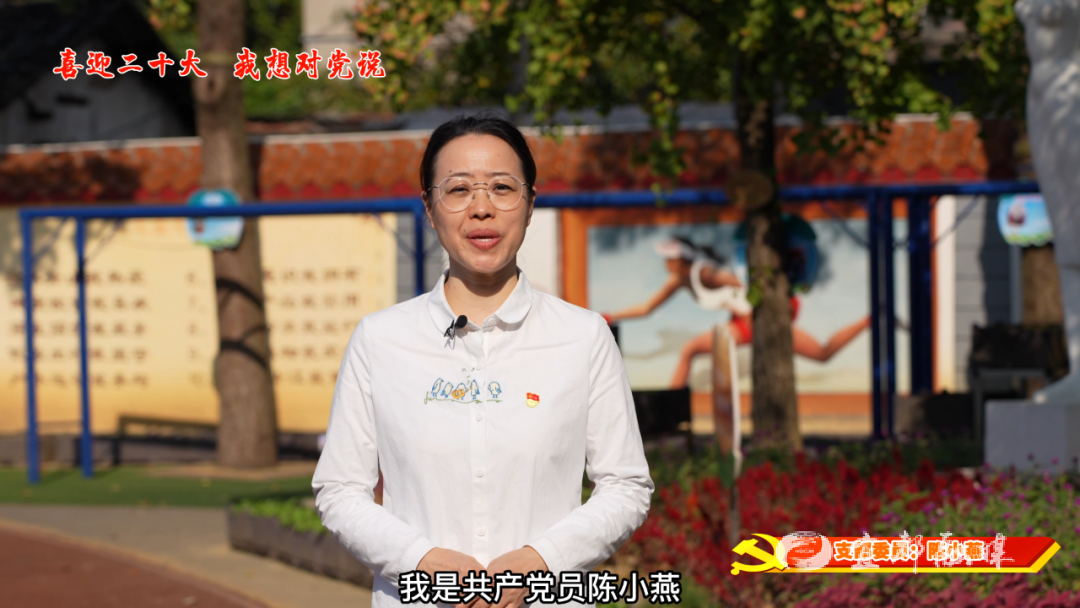 我是共产党员陈小燕,喜迎二十大,我想对党说:不忘初心铸就师德之魂,潜心育人谱写爱生之歌,我将执着坚守教育的情怀,做学生健康成长的引路人!做令人满意的人民教师!