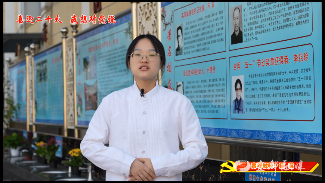 我是陆城一小教师汪梦婷,喜迎二十大,我想对党说:作为青年教师我将肩负起时代赋予的重任,在党的引领下,不断完善自我,在平凡的岗位上创造不平凡的人生。