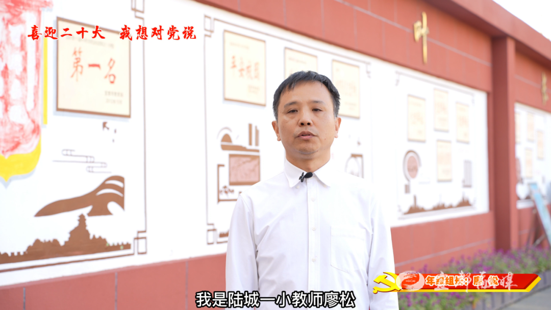 我是陆城一小教师廖松,我想对党说,不忘初心,做有理想信念、有道德情操、有扎实学识、有仁爱之心的四有教师。