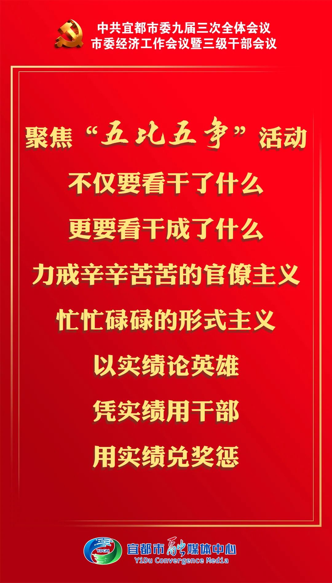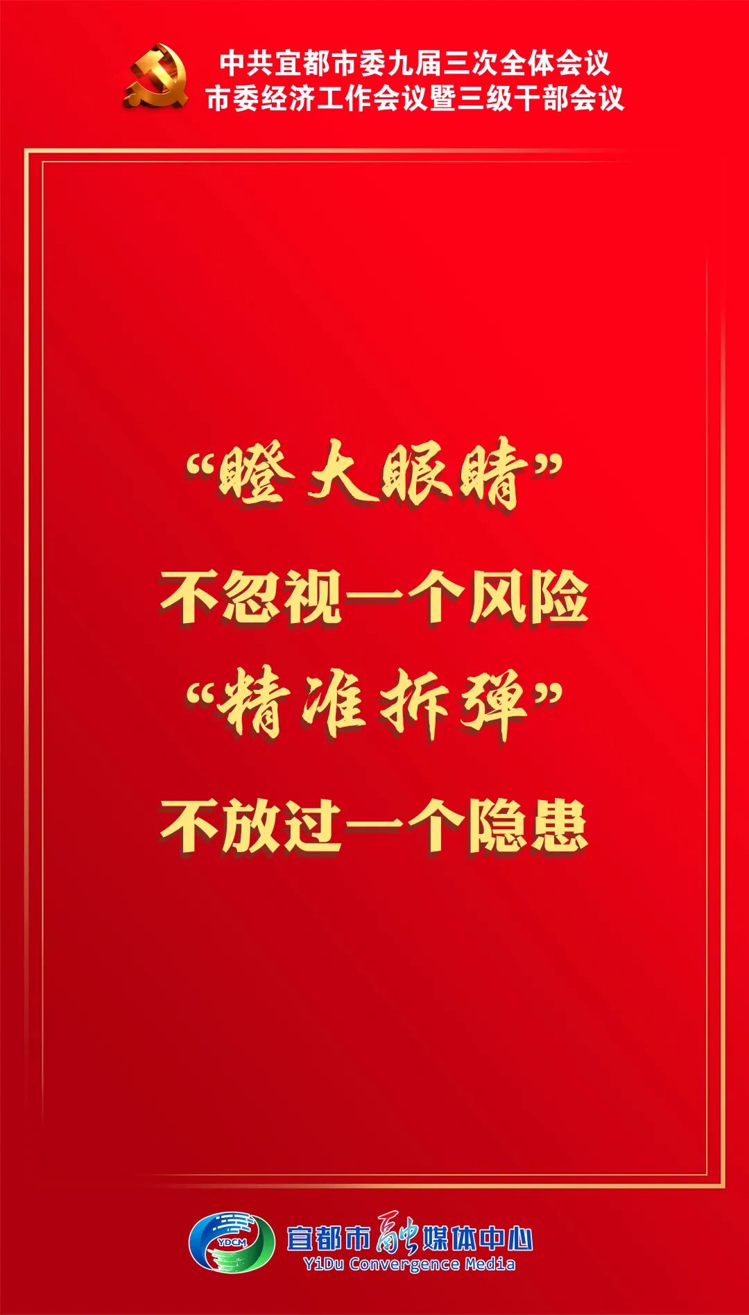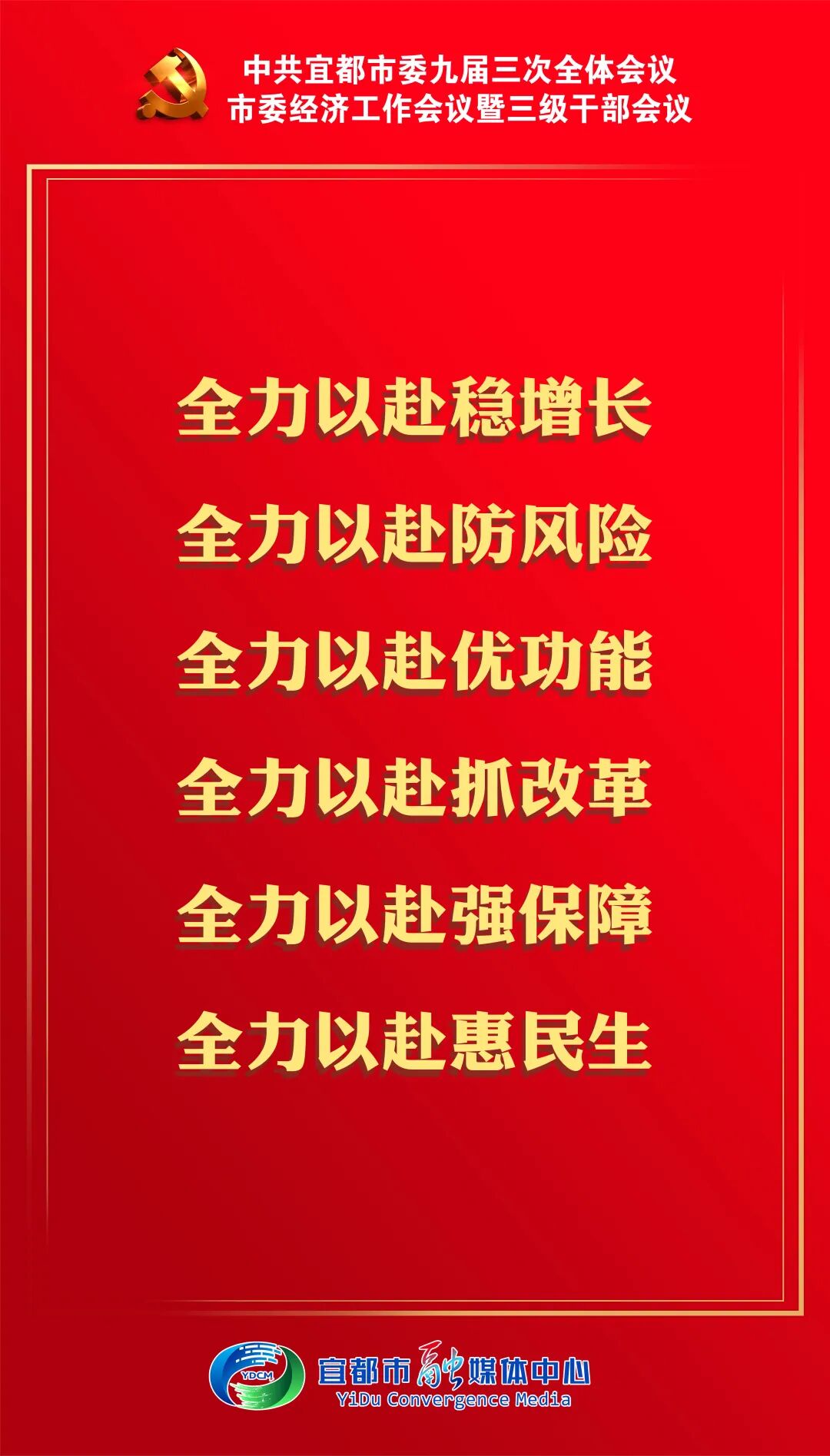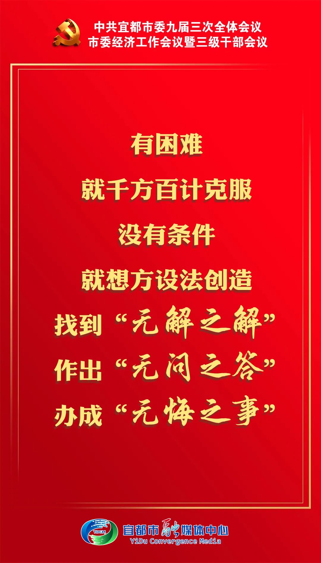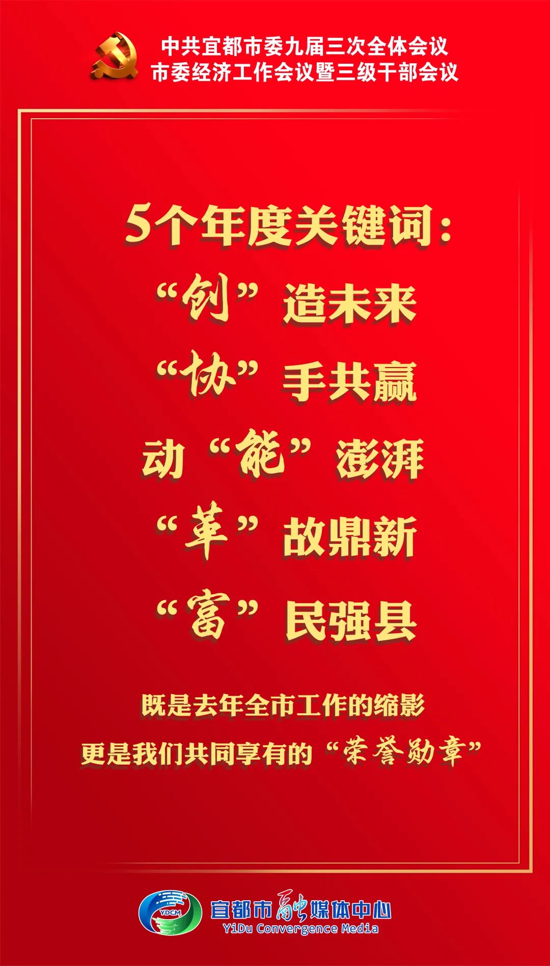 1月28日,市委九届三次全体会议、市委经济工作会议暨三级干部会议在宜都大剧院召开。大会现场金句频频,提振信心,擂响新年奋进鼓!动员全市上下要保持勇争一流的态度,树立勇攀高峰的决心,强化勇立潮头的韧劲,一往无前,奋勇争先,为“决胜1000亿、冲刺60强”、建成宜昌首个千亿县市、建设共富共美现代化新宜都而团结奋斗。