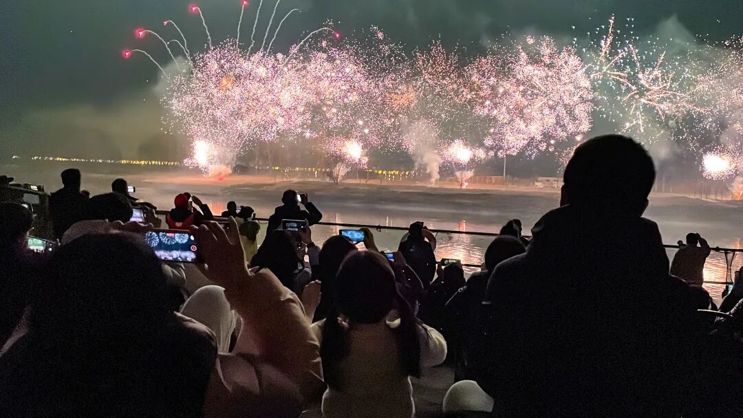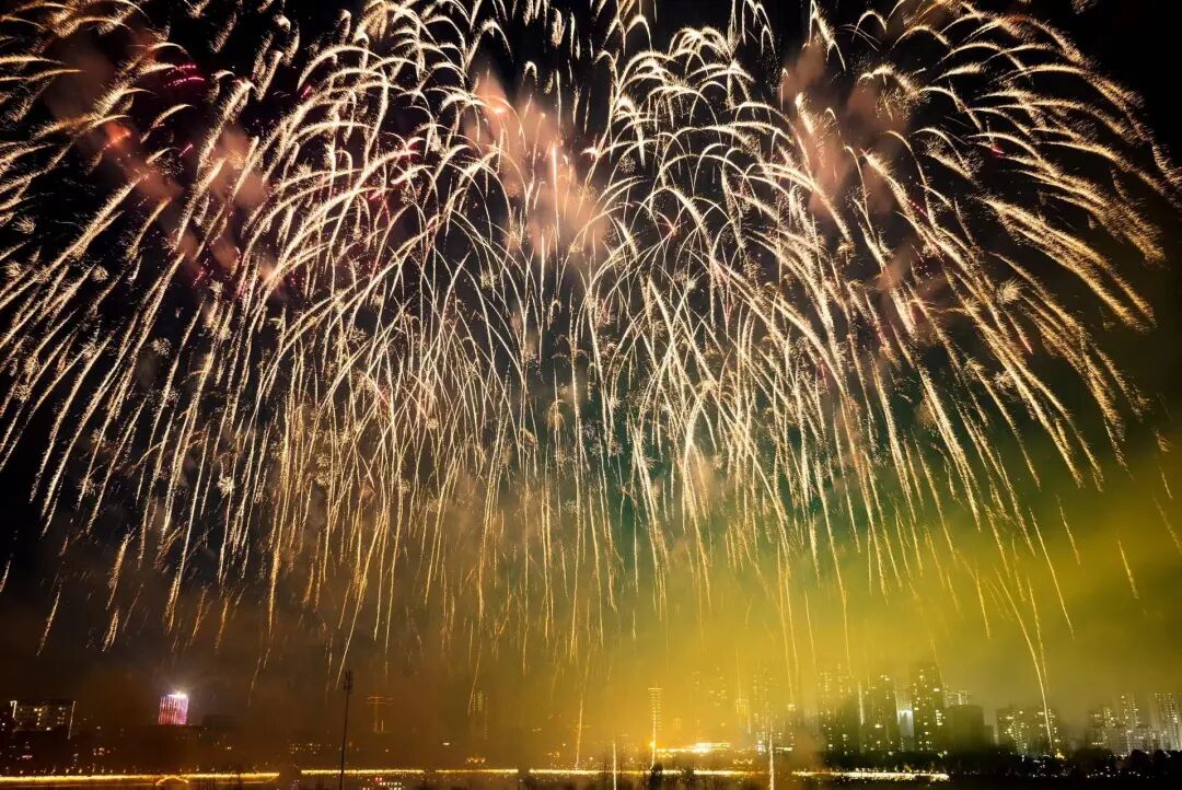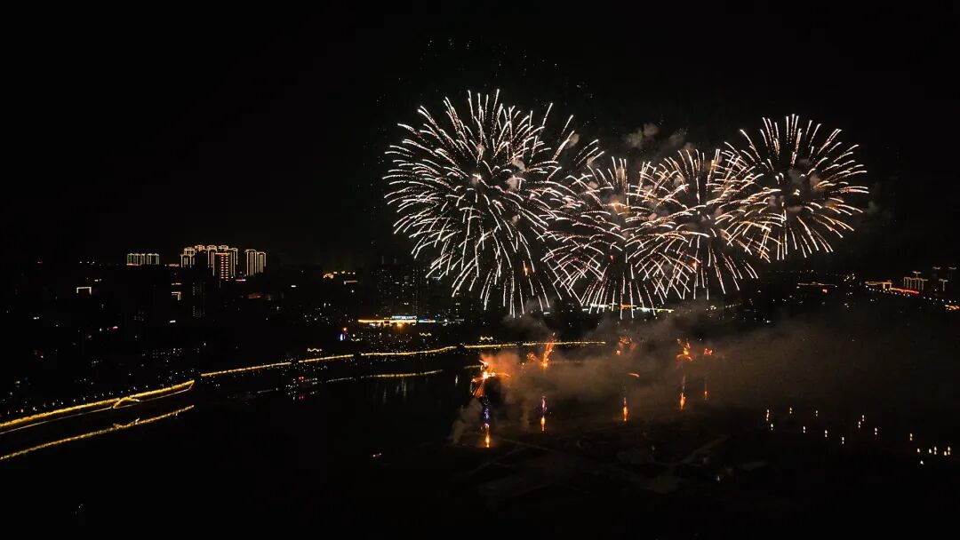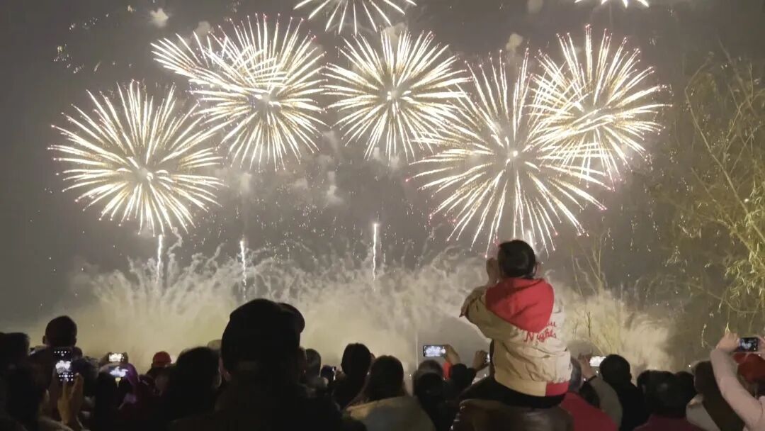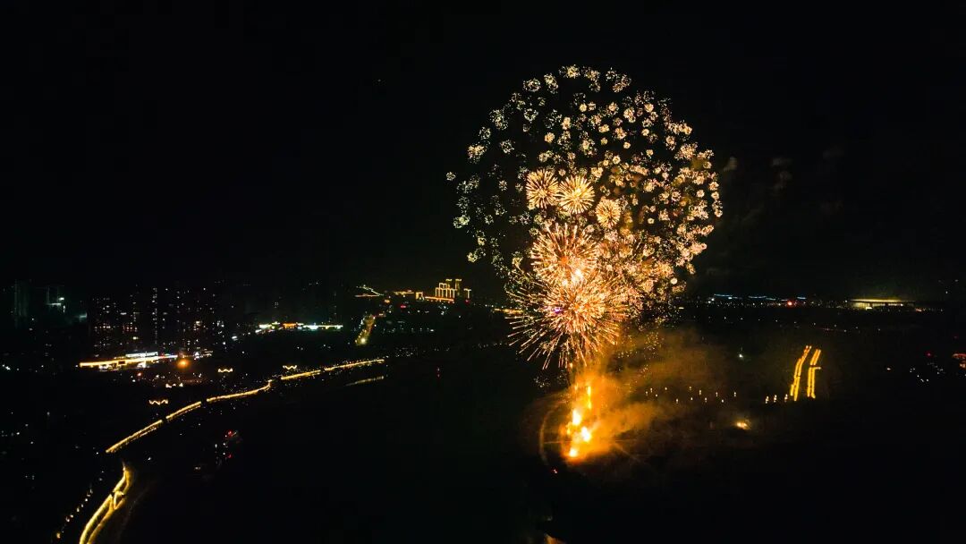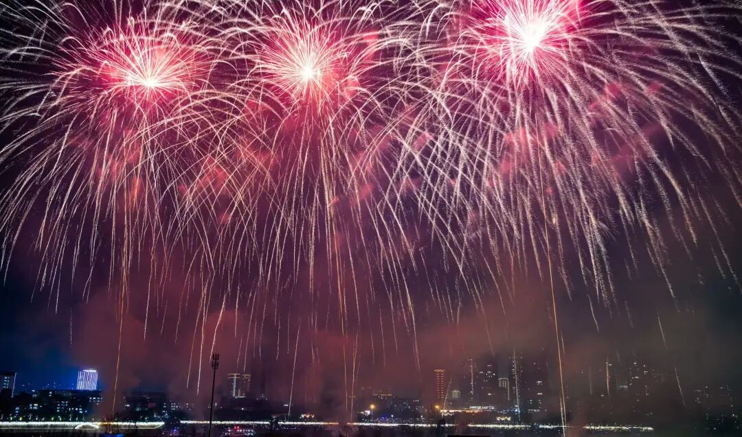 正月初八又称顺星节,是中国传统习俗中点灯的时节。晚20时许,焰火晚会正式开始。伴随着大气磅礴的号角声,一个个礼花弹腾空而起,璀璨的烟花在空中炸开,红红火火直冲云霄,焰火以天空为舞台尽情飞舞,有的宛如瀑布,从高空飞泻而下;有的状似花朵,锦簇花团盛开在天际,有的犹若壮美的诗篇,将城市夜空点缀得美丽耀眼。