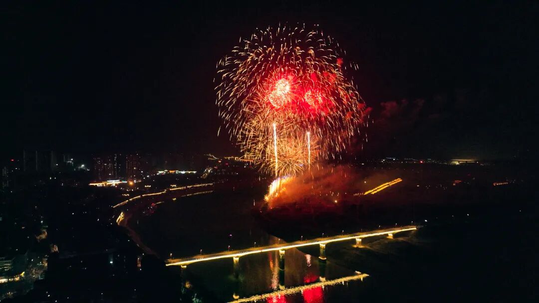 据悉,整场晚会焰火燃放时间约25分钟,编排燃放高空烟花、安全环保特效单发烟花、组合高空礼花弹、中空地面烟花、特效焰火,以高空、中空、低空多层次焰火等元素的整合控制信号配合,共分“春回宜都兴、致敬追梦人、奋进新征程、明天更美好”四个篇章,共同营造喜庆热烈的节日盛景。