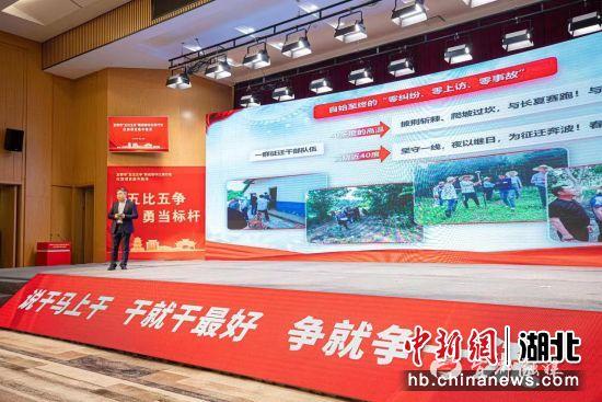 中新网湖北新闻3月19日电 (黎文来 刘传东)湖北省宜都市19日举行“五比五争”赛成绩夺红旗行动红旗项目集中路演活动,来自16个单位和部门的负责人登上舞台,以实干的业绩“晾晒”比学赶超、大抓发展的骄人成绩。