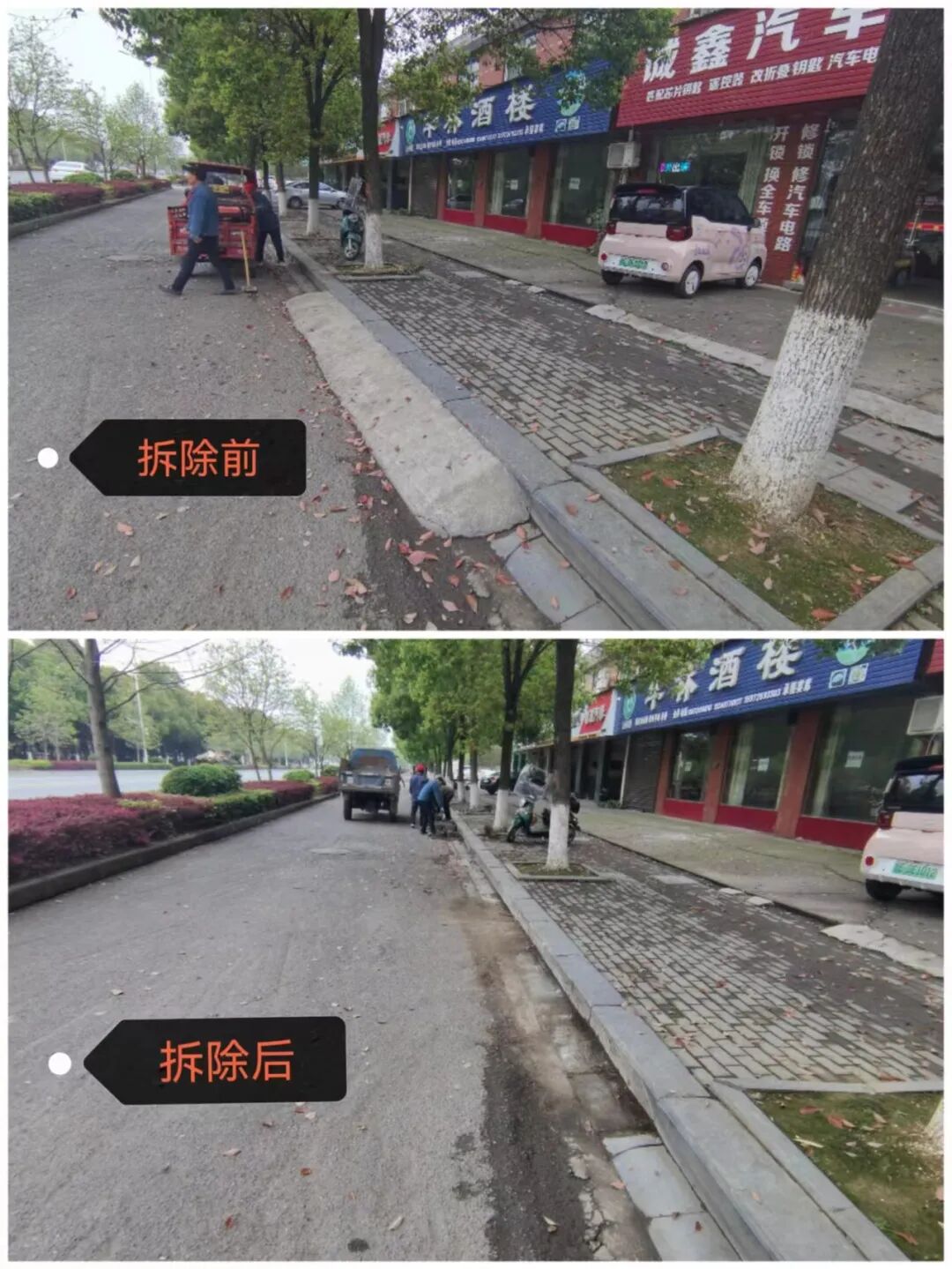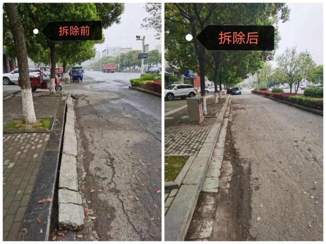 截至目前,已拆除长江大道诗怡商行至好运轮胎店铺前“私接踏步”12处,共计125米,清理废渣5车次。