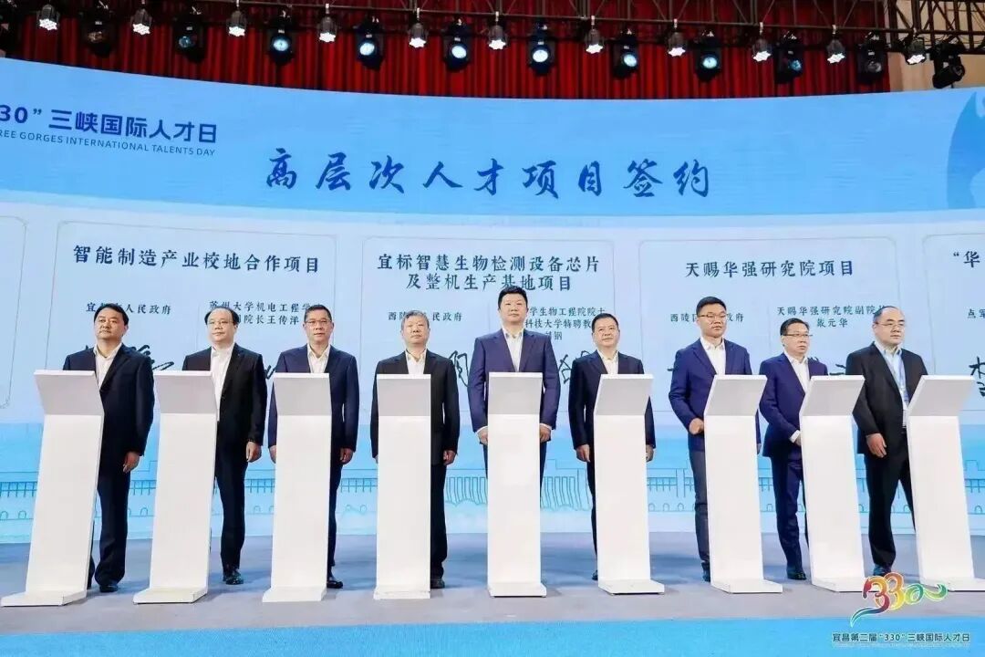 3月30日上午,宜昌第二届“330”三峡国际人才日盛大启幕。在开幕式上,宜都市人民政府分别与三峡大学、苏州大学机电工程学院成功签订《校地人才资源开发合作专项协议》《智能制造产业校地合作协议》,标志着宜都市又开辟出两条坚实的人才供应链,校地人才合作再创新局。