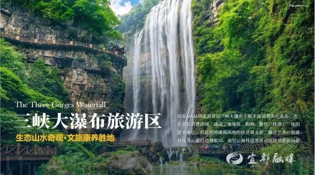 目的地简介:国家AAAAA级旅游景区三峡大瀑布不断丰富消费多元业态、优化景区消费环境,建设了集集散、购物、餐饮、休憩于一体的游客中心,打造明清建筑风格的扶贫商业街,融合艺术、创意、科技等元素打造裸眼3D、高空云海栈道等多元沉浸消费新场景。