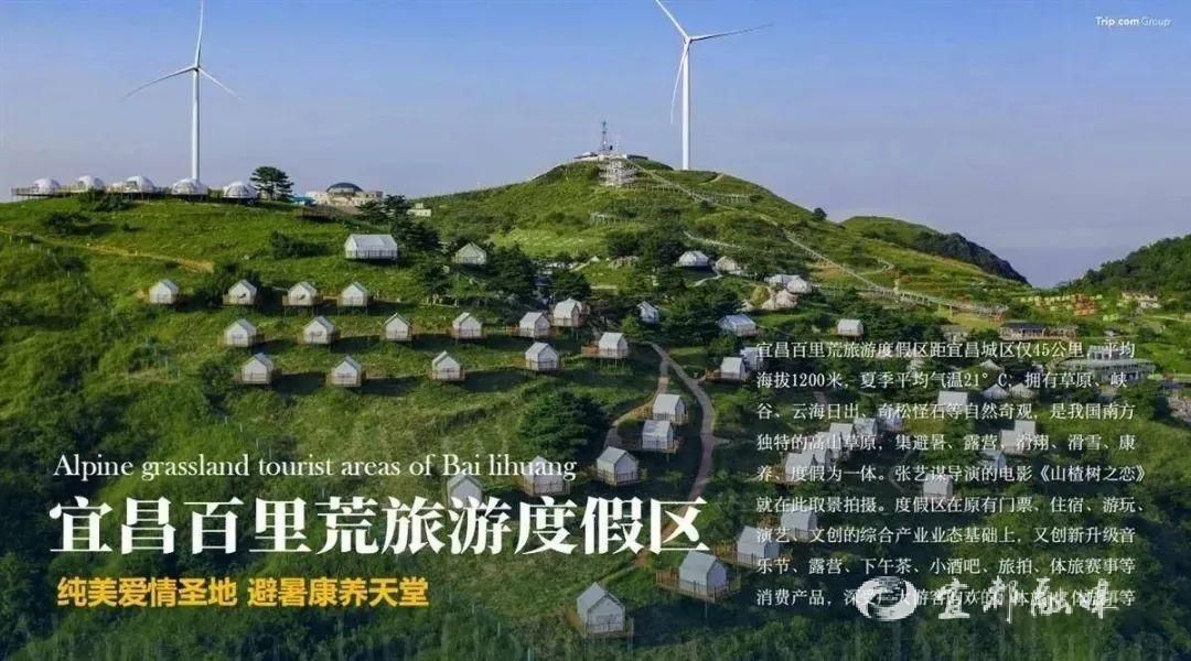 目的地简介:宜昌百里荒旅游度假区距宜昌城区仅45公里,平均海拔1200米,夏季平均气温21°C,拥有草原、峡谷、云海日出、奇松怪石等自然奇观,是我国南方独特的高山草原,集避暑、露营、滑翔、滑雪、康养、度假为一体。张艺谋导演的电影《山楂树之恋》就在此取景拍摄。度假区在原有门票、住宿、游玩、演艺、文创的综合产业业态基础上,又创新升级音乐节、露营、下午茶、小酒吧、旅拍、体旅赛事等消费产品,深受广大游客的欢迎和喜爱。