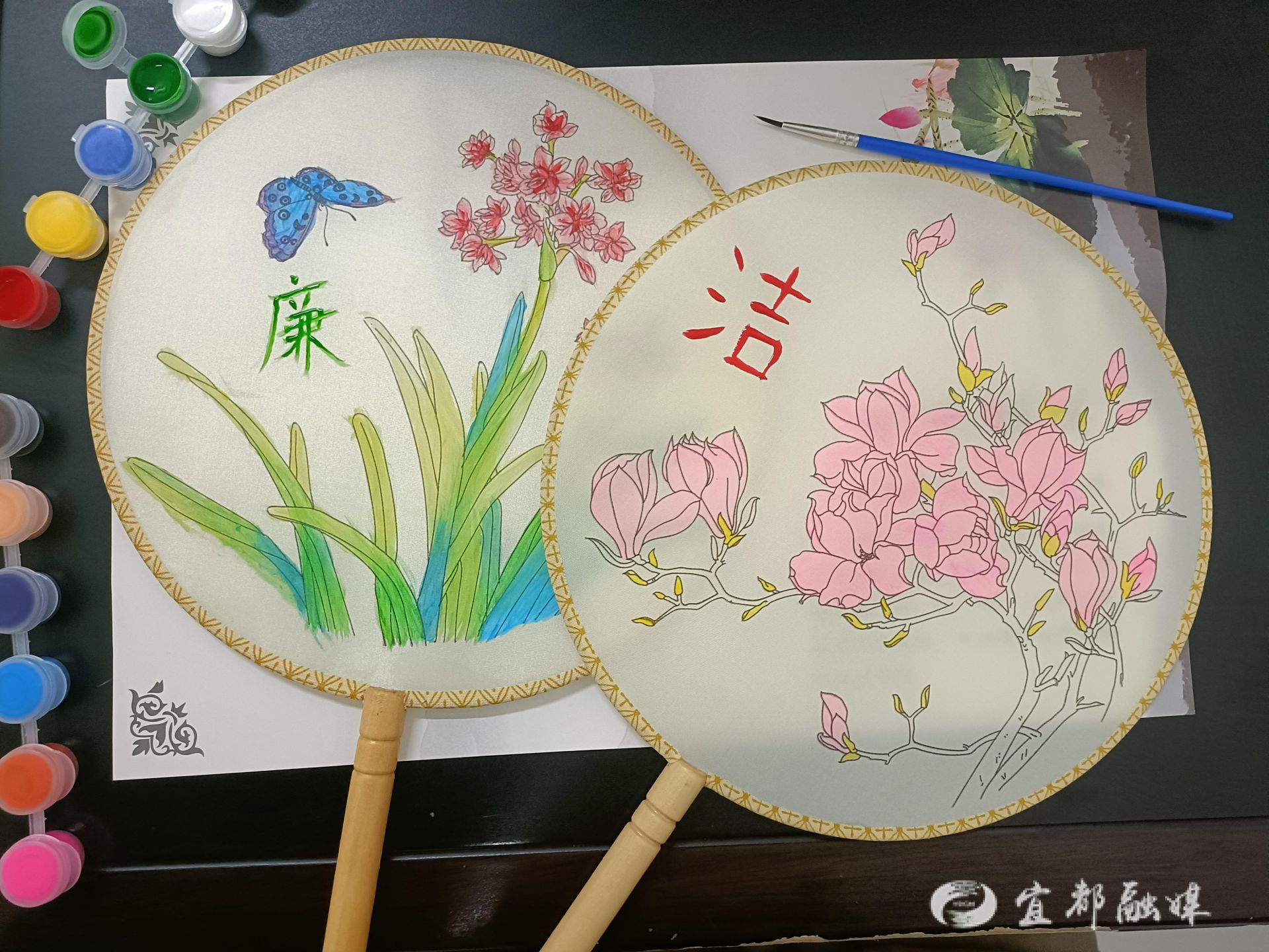 “拜月亮,共同祝愿,祈求家庭美满、民富国强。赏月亮,互相欣赏,和谐共生,平安吉祥。吃月饼,彼此分享,民族团结国家兴旺。”杨汉民老师用凝练的语言阐释了中秋拜月的深刻内涵,在文化课、家风家训分享会以及“月”字诗词竞答后,大家开启了“动手模式”——画“廉”“洁”团扇。