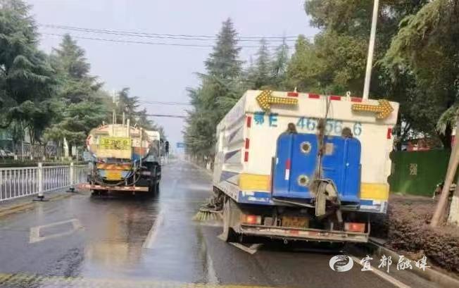 提高洒水降尘质效。采取“3+X”作业模式(即机动车道、非机动车道、人行道三种作业方式和多频次机械化洒水、洗扫、垃圾收运、垃圾容器清洗等),组织环卫服务单位对主次干道进行洒水降尘和机械化洗扫保洁,做到主干道每日不少于2次机械化洗扫和4次洒水,次干道每日不少于1次机械化洗扫和2次洒水,对园林大道、宜华大道、国商路等重点路段在主干道洒水、洗扫频次的基础上增加机械化洗扫作业频次,提高路面湿度,减少路面扬尘。自接到通知后,累计派出环卫保洁人员2400余人次,出动洒水车124趟次、洗扫车44趟次、雾炮车10趟次。