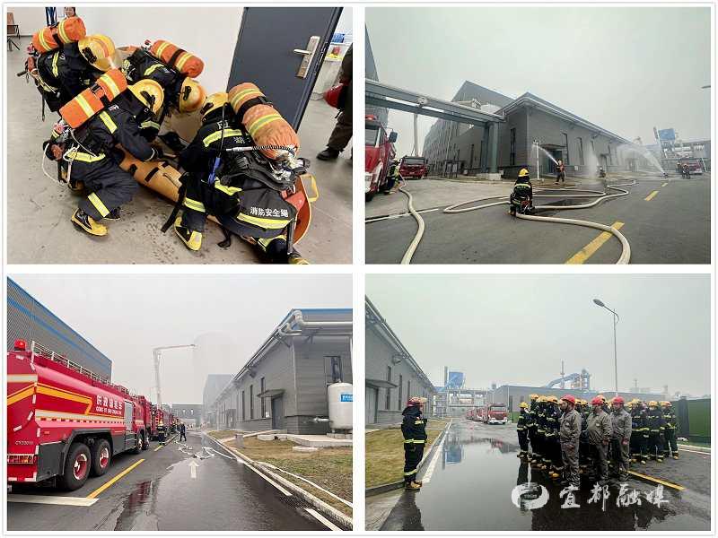 宜都融媒讯(通讯员 刘振东 李晗)近日,宜都市消防救援大队联合支队训保基地、宜都换流站驻站消防队在宜昌容汇锂电新材料有限公司开展新能源厂房灭火救援实战拉动演练。