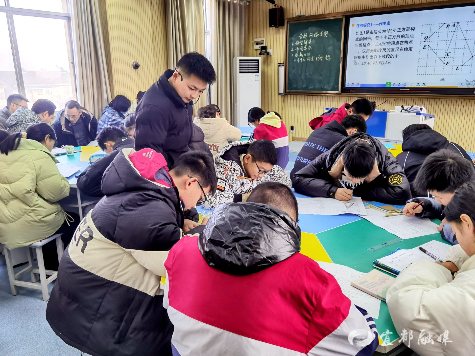 此次培训为青年教师搭建了一个学习与交流的平台。活动议程丰富多样,包括课堂观摩和交流展示,青年教师通过实践与互动,积极参与研讨。在课堂观摩环节,课程《玩转三角板》创意十足,通过四个活动激发学生的兴趣;《网格作图》则深入剖析了新中考中的热点知识,展示了其精湛的教学技巧。
