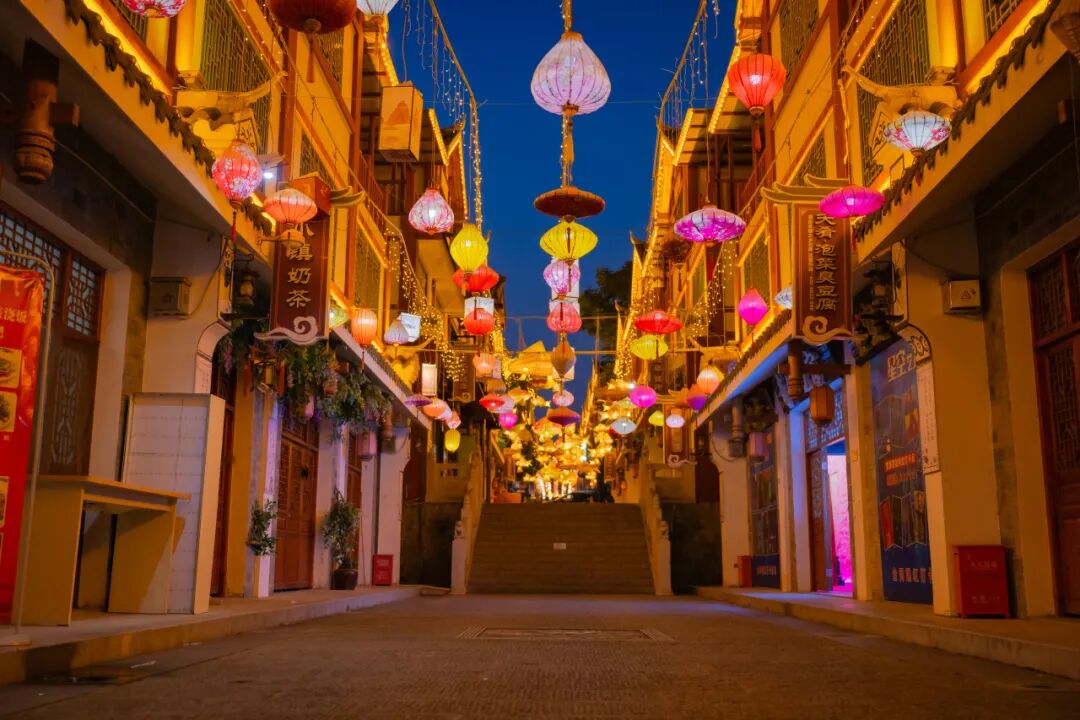 景区内设有市井街、穿越街、风情街等多款特色主题街区,还有郑和下西洋、抛绣球、迷宫等沉浸式体验项目,摩登女郎、异国美人等多种演绎盲盒,带领大家感受中外古今、一步一景。