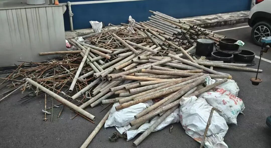 在胡某家的猪棚里,民警现场查获了大量涉案建筑钢材,有钢筋扣件、钢管、拉铆等,重量不低于1000公斤。目前,胡某已被公安机关采取刑事强制措施,案件还在进一步侦办当中。