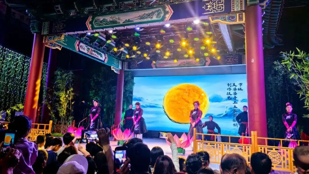 与此同时,科技赋能的非遗展演成为本场活动的点睛之笔。纱幕投影技术再现夔门险峻、悬棺秘境的壮丽景象,声光技术模拟出暴雨滂沱、纤夫号子的震撼音效,建筑机械装置则让茶楼主楼在观众眼前“金光洞开”,让非遗在奇幻场景中焕新。