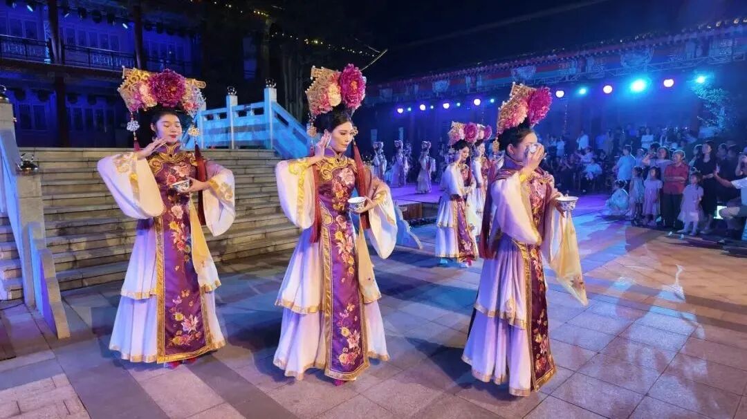 你以为非遗只是记忆中的老手艺?清江湾的夜晚直接让非遗“活”成了沉浸式剧本,民俗文化中心化作“晚清宜都茶楼”,沉浸式大戏《古道茶魂・邻苏谜踪》拉开帷幕,周氏泥雕、土家虎头鞋等非遗技艺现场展演,梆鼓调《夔龙镇水谣》唱响纤夫战天险的雄浑,茶僮以宜红茶艺奉上“可以喝的文物”,茶香氤氲中,观众仿佛穿越时空,亲历晚清市井的烟火谜局。