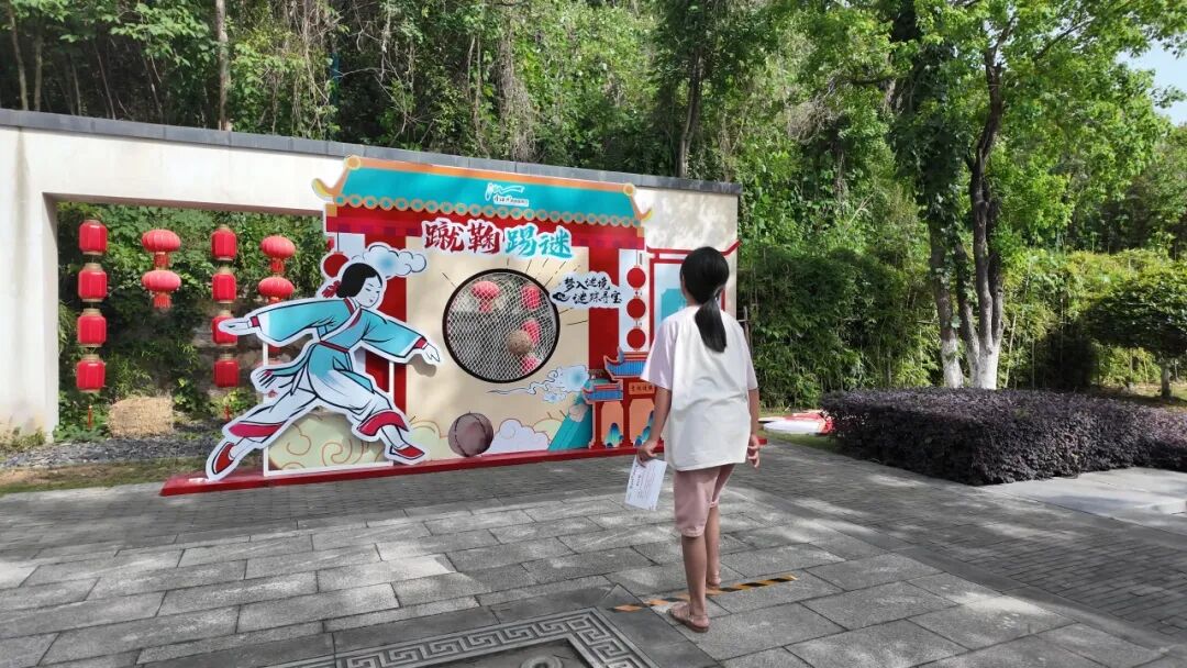 走进青林谜镇,“探酉茶室”成为打卡首站,不少人手持寻谜闯关卡穿梭于投壶取谜、蹴鞠踢谜等趣味关卡之间,与NPC“谜神”现场互动竞猜,在传统游艺中破解蕴含三峡地理、民俗知识的谜题,赢取青林寺谜语文创礼品。