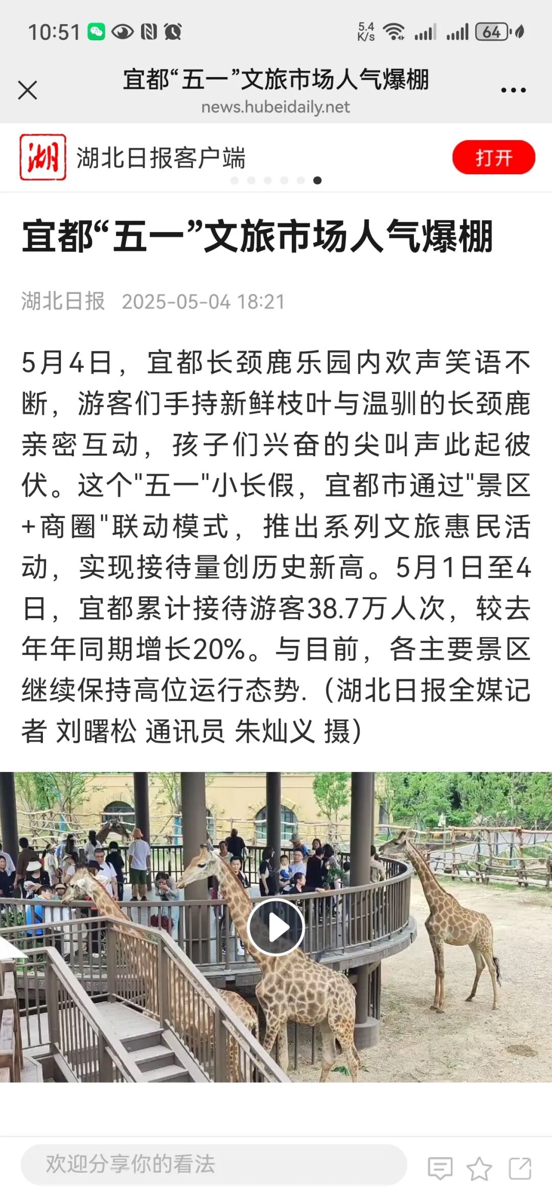 “文旅宜都”“掌上宜都”公众号、抖音号、视频号推出“五一‘趣’狂欢”“五一假期游宜都”系列内容,浏览量破亿;